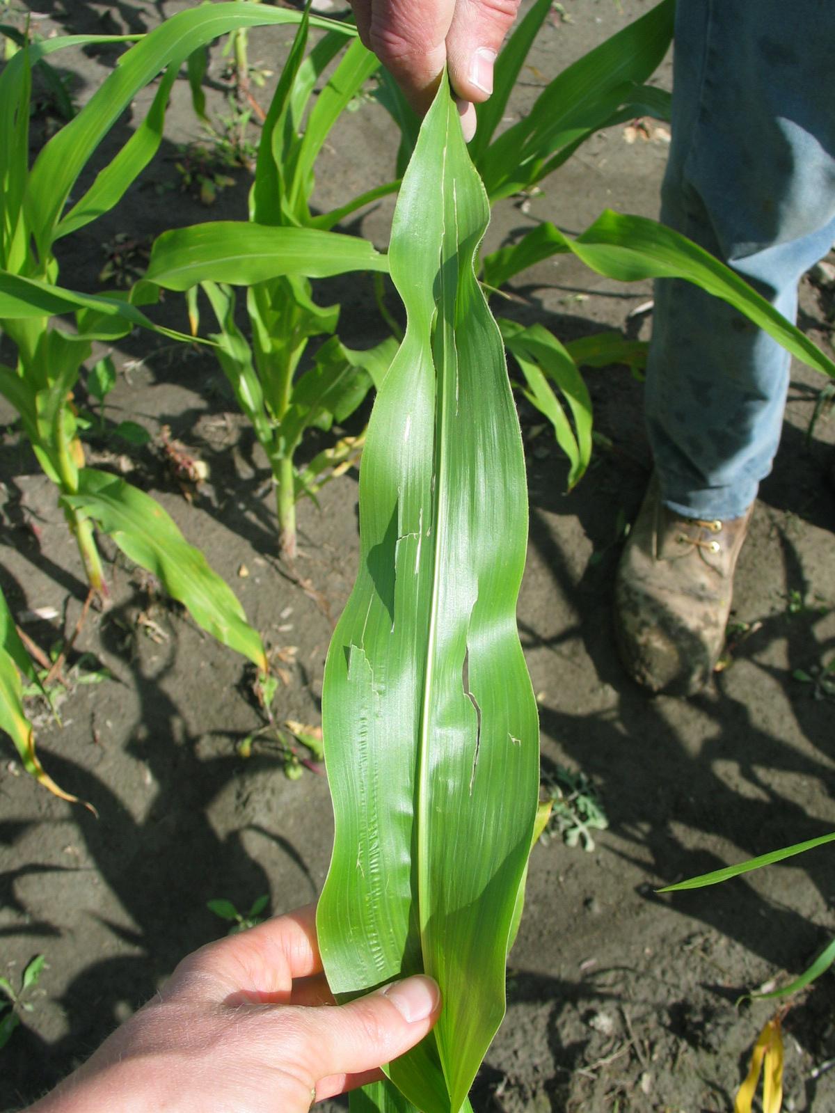 Légende: Lacérations sur feuille de maïs grain et fourrager