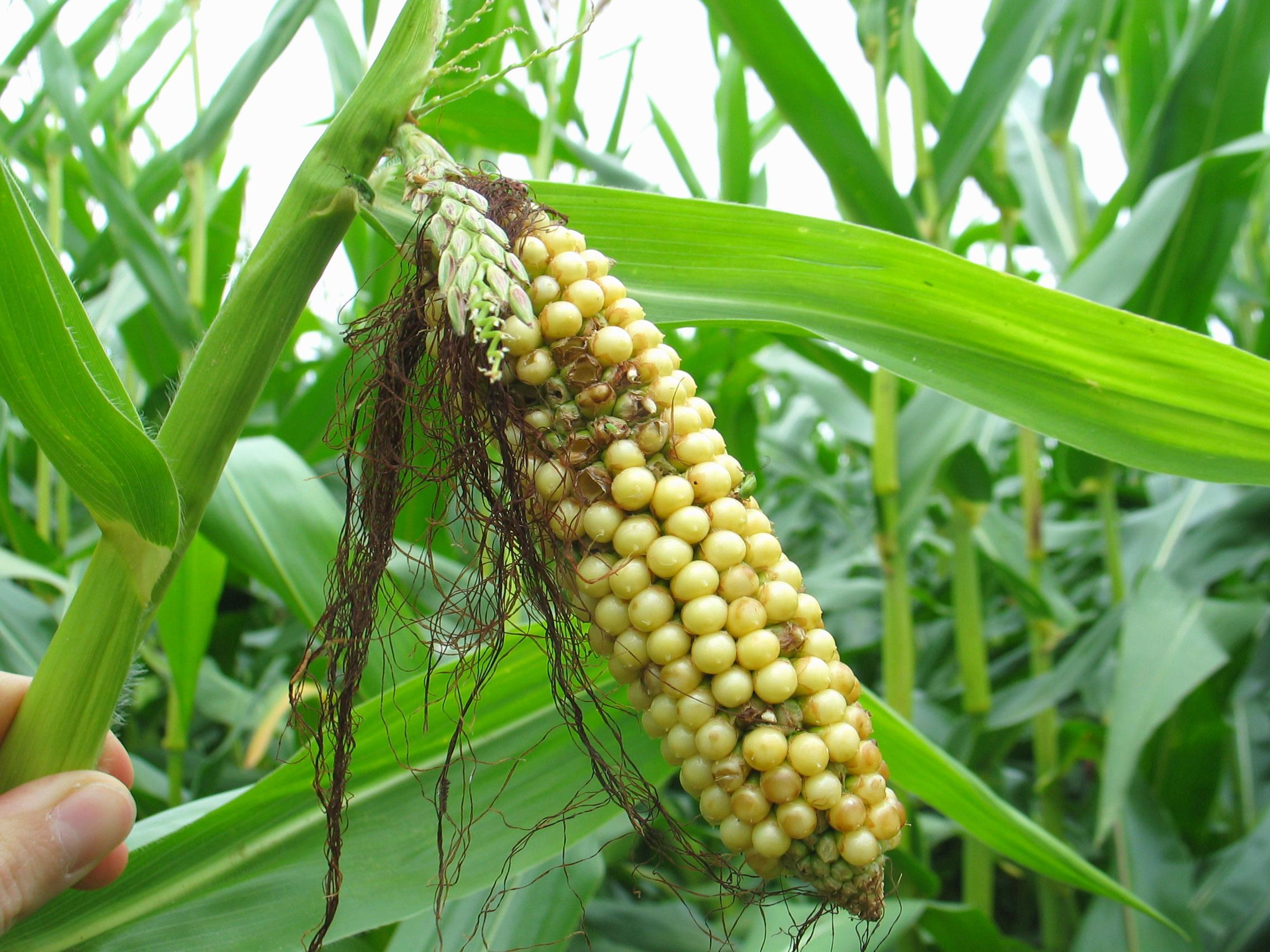 Description: Chez le maïs, il arrive parfois que la fleur mâle soit déformée et occupée majoritairement par un épi. Pour des raisons mal définies, mais qui semblent liées à un débalancement hormonal, la différenciation cellulaire au niveau de certaines fleurs est modifiée et laisse place à un épi au lieu d'une croix. Ce phénomène est appelé « croix-épi » (''tassel-ear'').