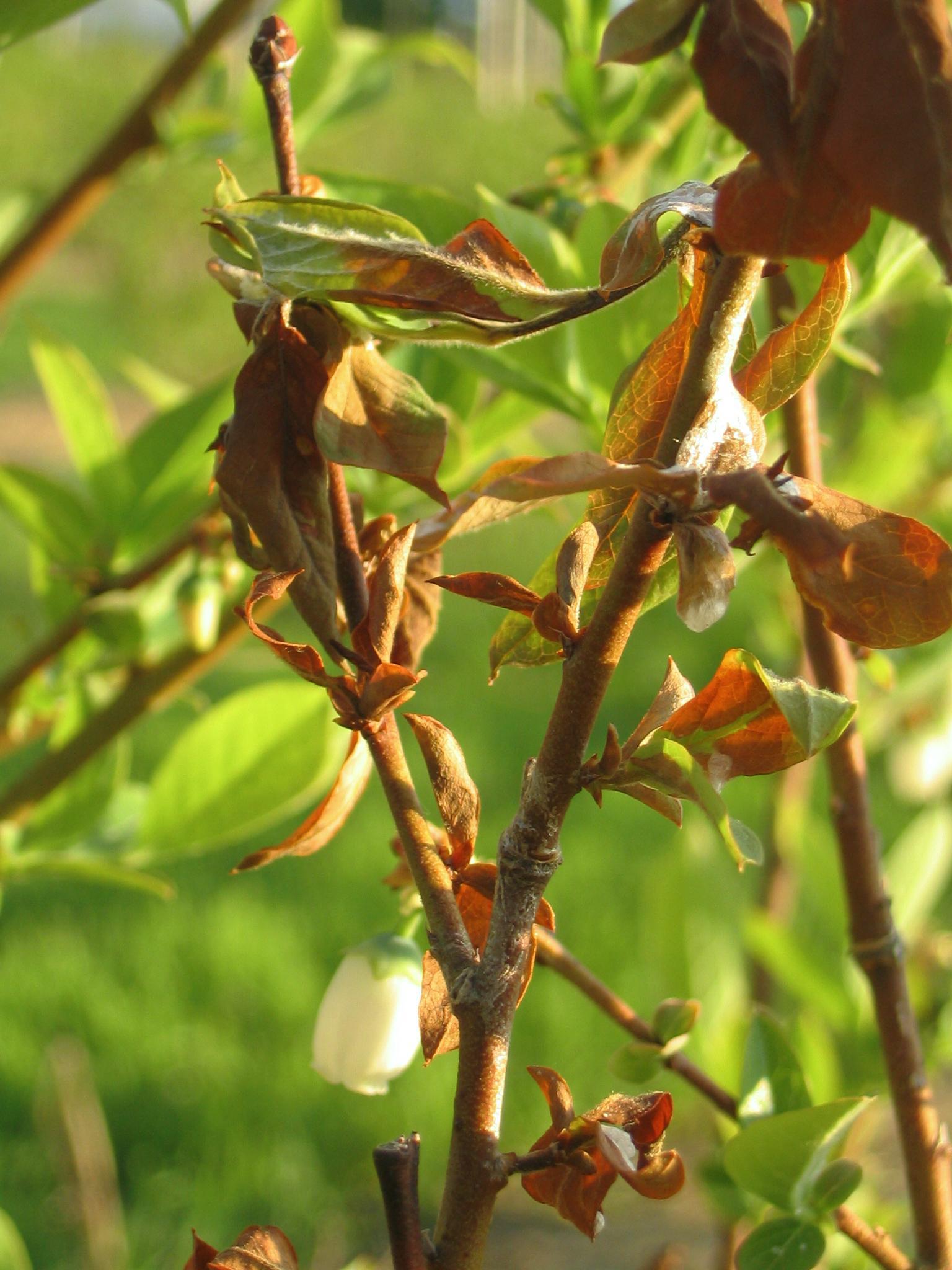 Légende: Brûlures sur feuilles de bleuet en corymbe