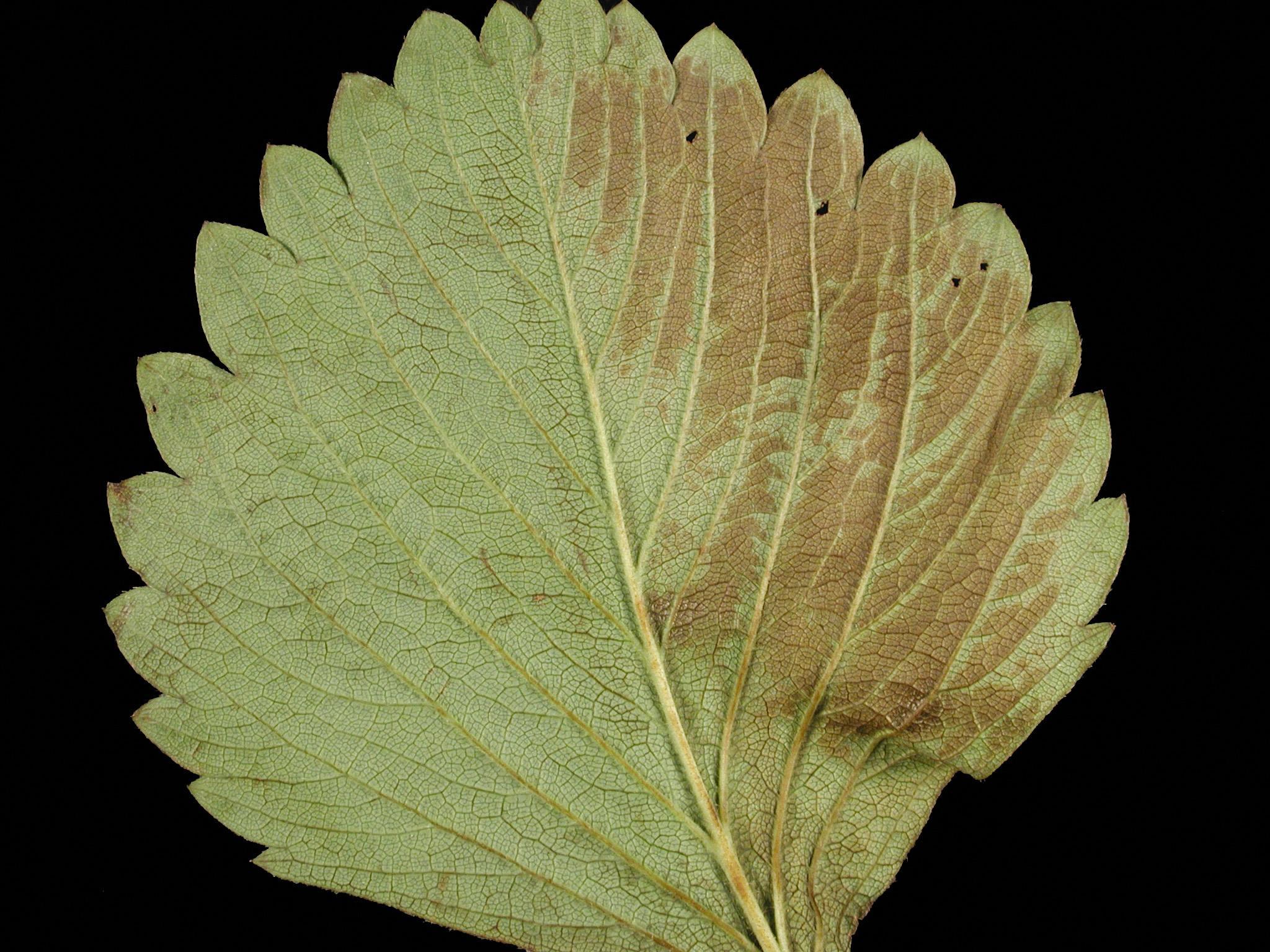 Légende: Brunissement d'une foliole de fraisier