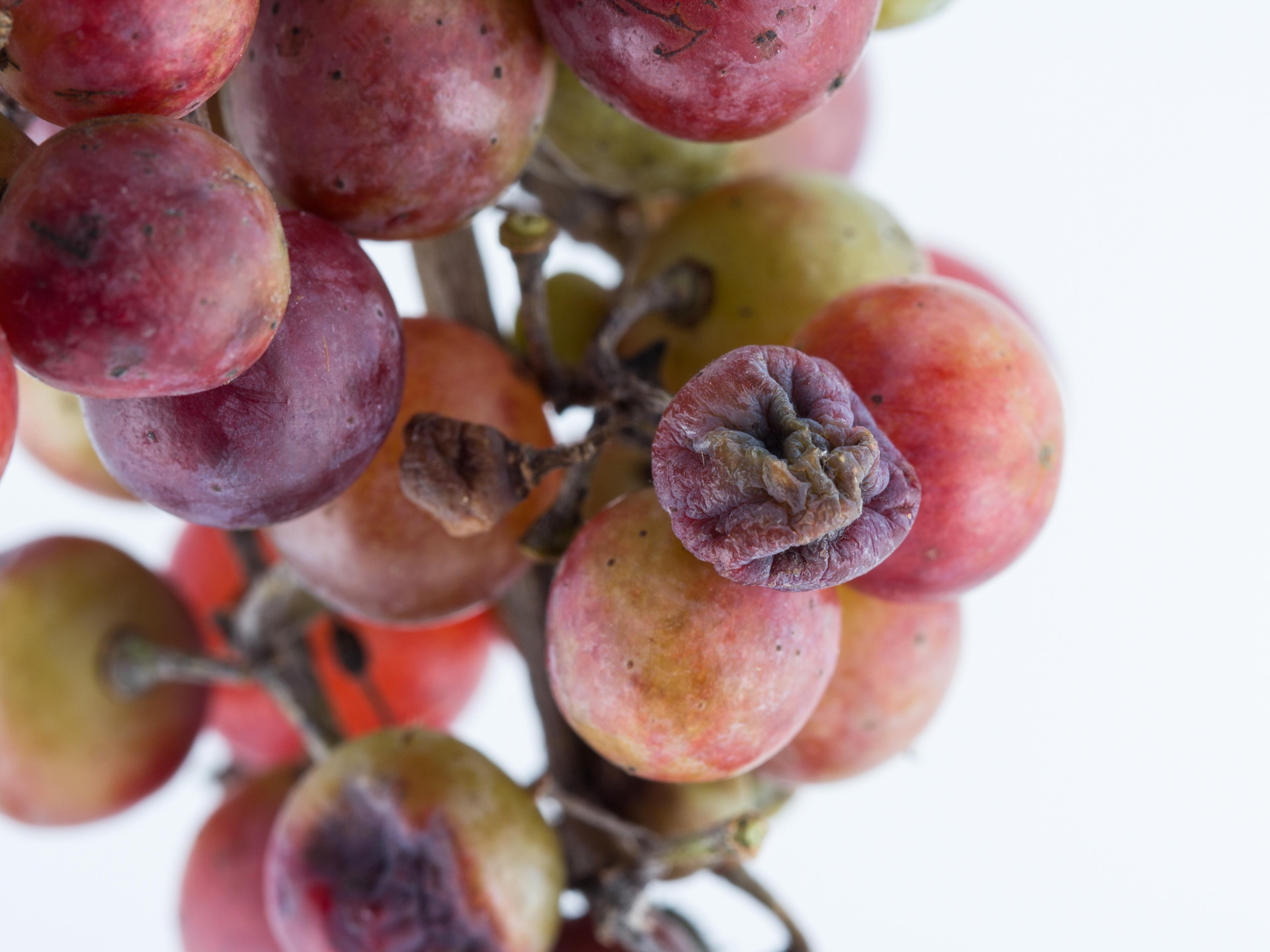 Légende: Raisins brunâtres, déprimés et ratatinés