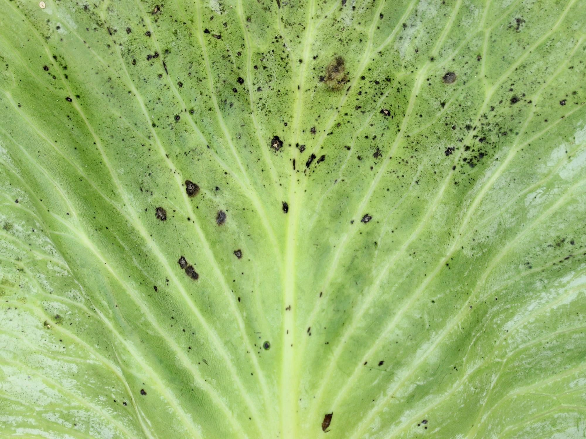 Légende: Taches noires sur feuille de chou pommé