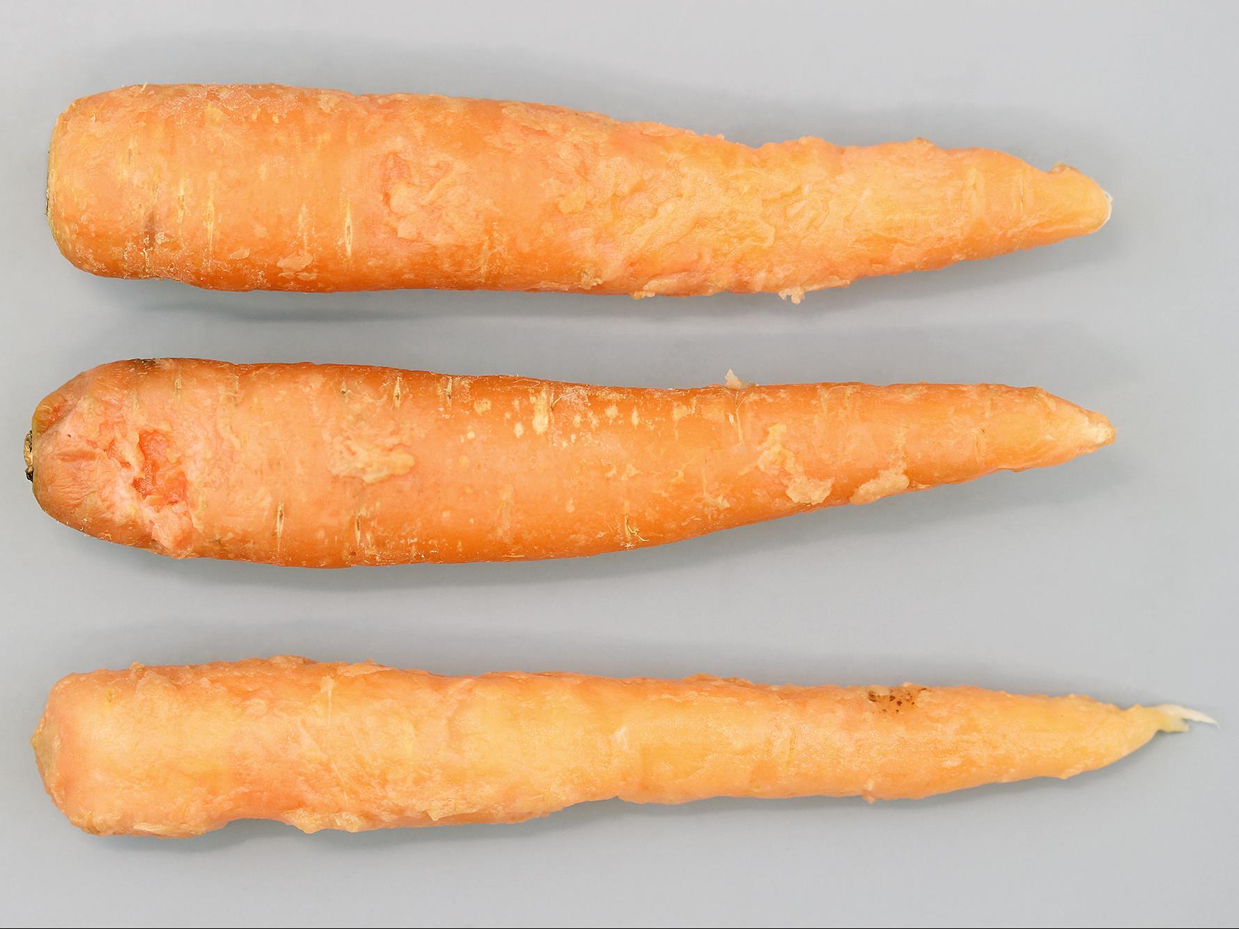La conseillère agricole mentionne que ces carottes ont été cultivées, récoltées et lavées en Géorgie aux États-Unis et par la suite, expédiées au Québec où elles ont été emballées. Une fois ensachées, plus de 50 % des carottes ont présenté des zones de pourritures molles aqueuses. Le dépérissement a été très rapide. Lors de la production en Géorgie, les champs de carottes ont subi un épisode de gel. Il est probable que le gel subit lors de la saison de croissance ait endommagé les tissus et généré des voies d’entrées pour les levures et les bactéries secondaires.