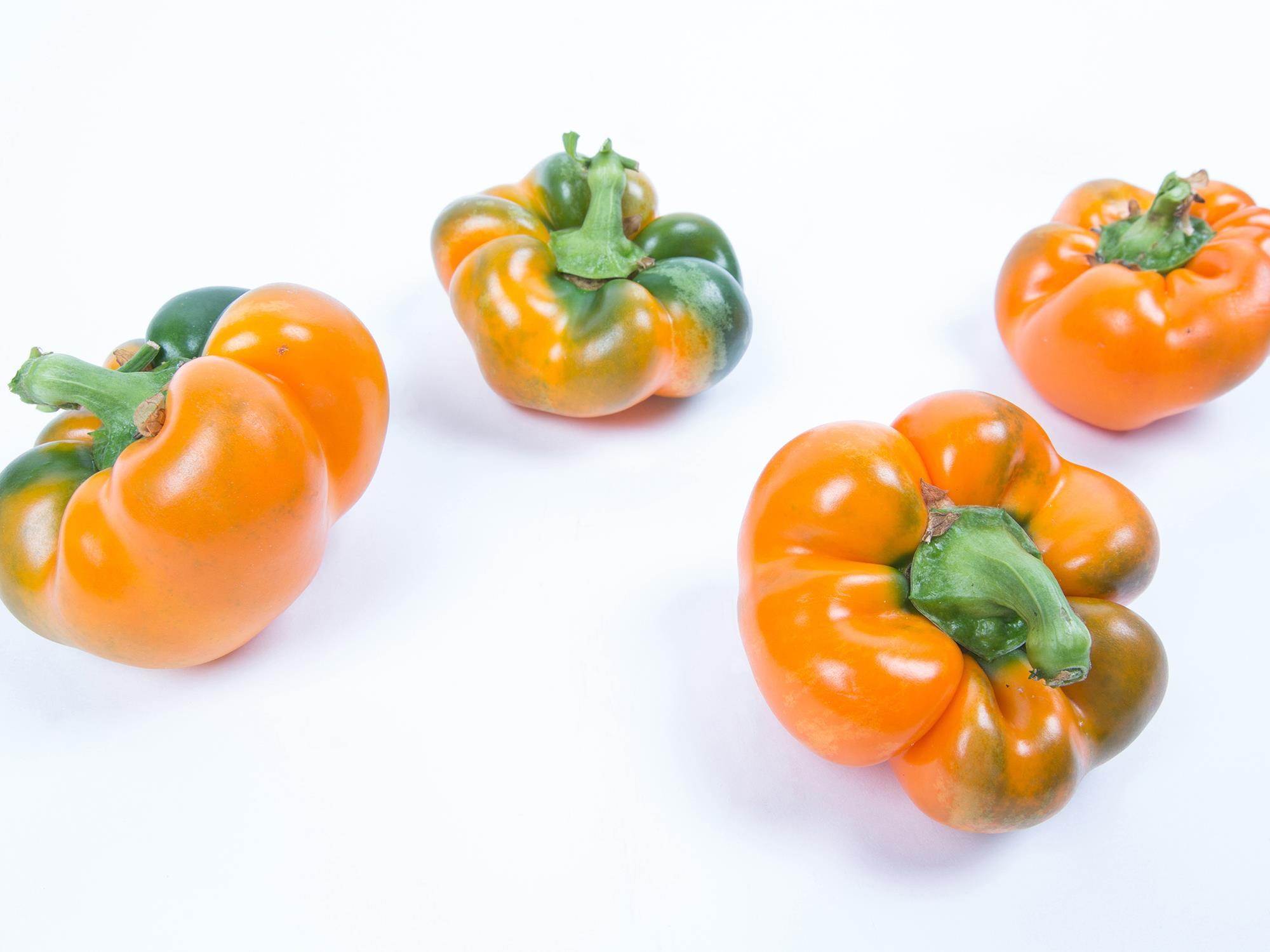 Description: Les poivrons (cv 'Magno') sont de petite taille et aplatis. Ils portent peu de graines (non visible ici). Chez le poivron, les fruits difformes sont caractéristiques de grands écarts de température entre le jour et la nuit lors de la floraison, ce qui entraîne une pollinisation inadéquate. Dans ce cas, il est fort probable que les écarts de température soient liés au froid.