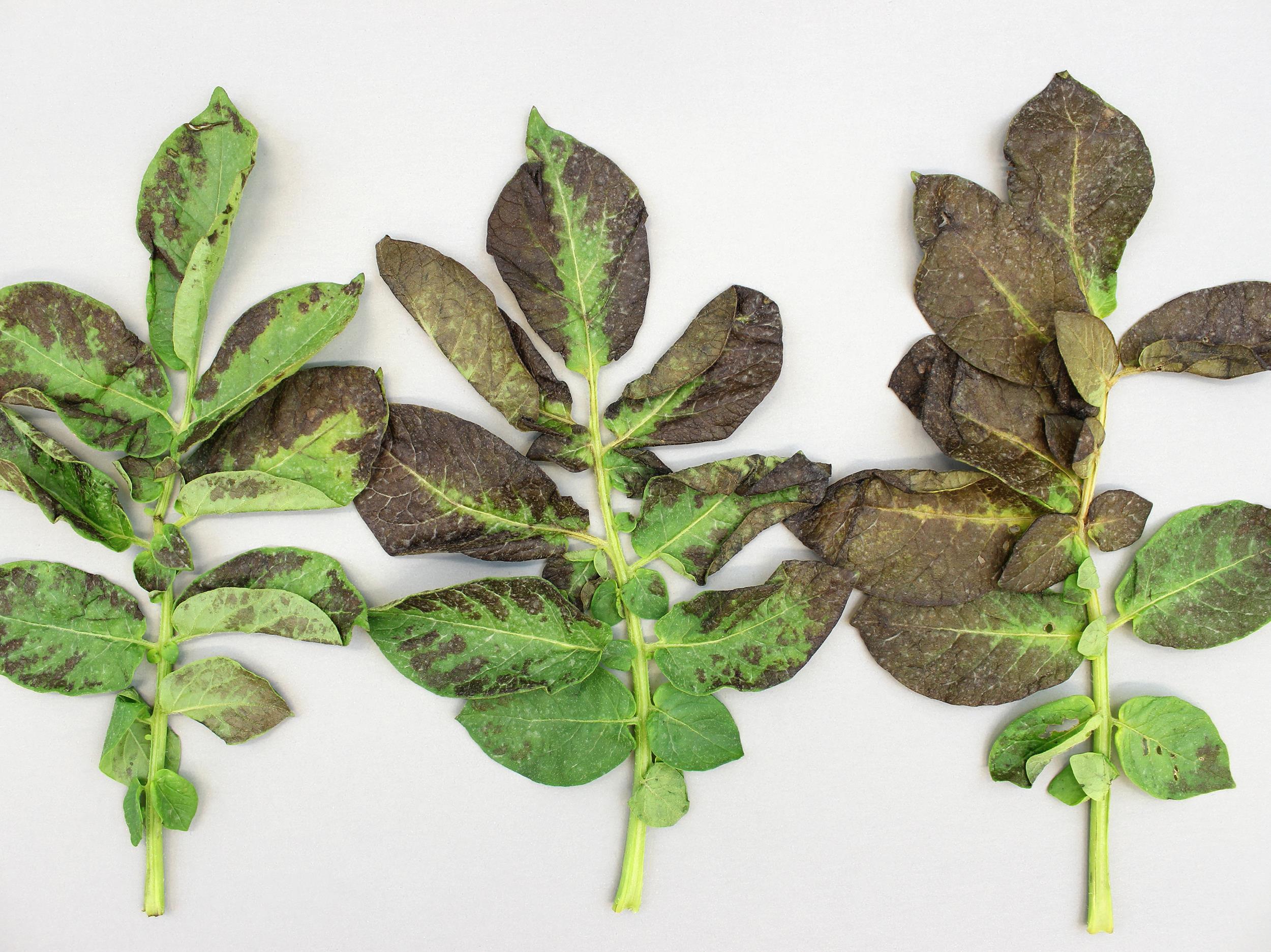 Légende: Brunissement des folioles sur feuilles de pomme de terre