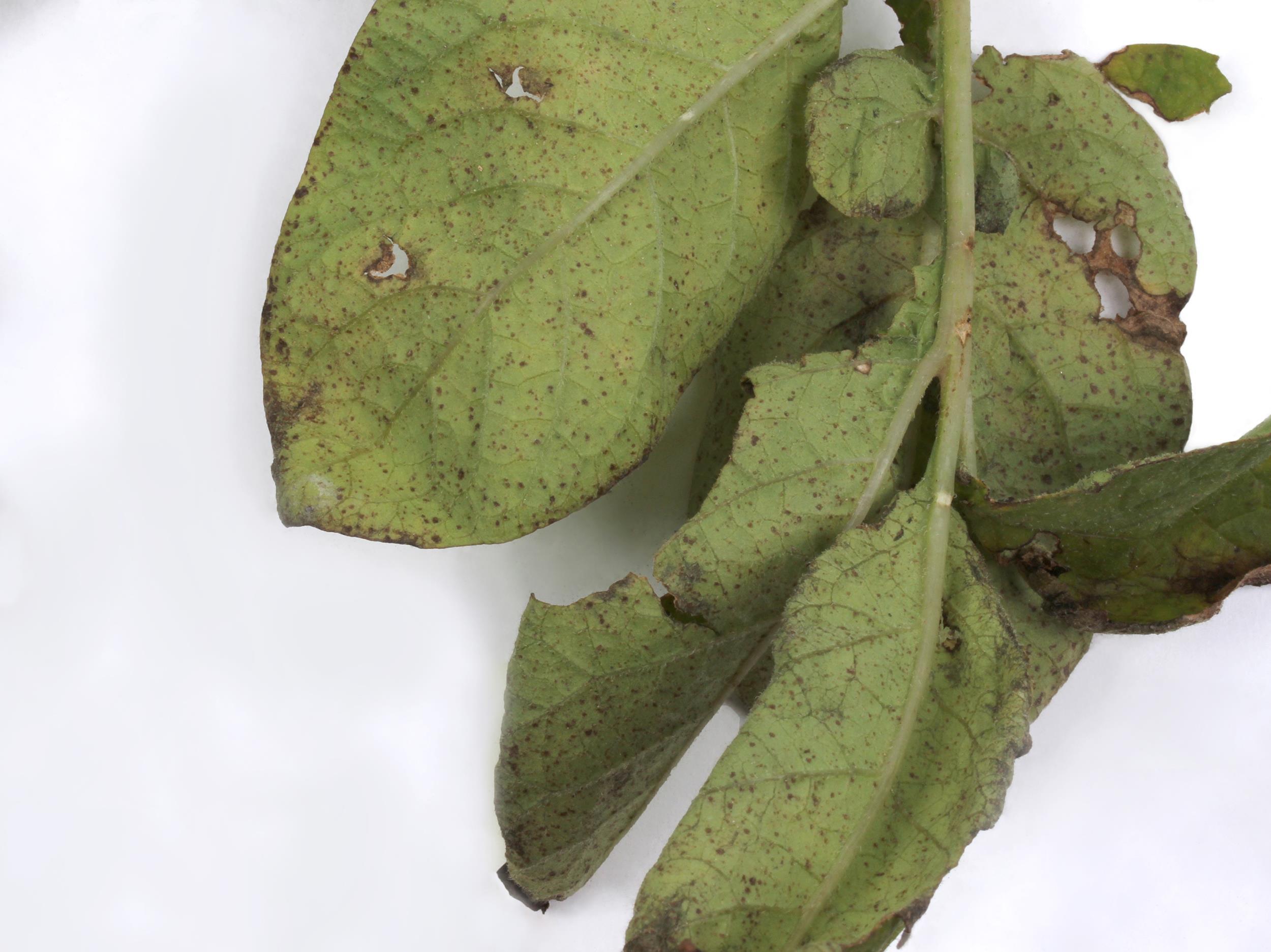 Légende: Fines taches brunes à la face inférieure des folioles de pomme de terre