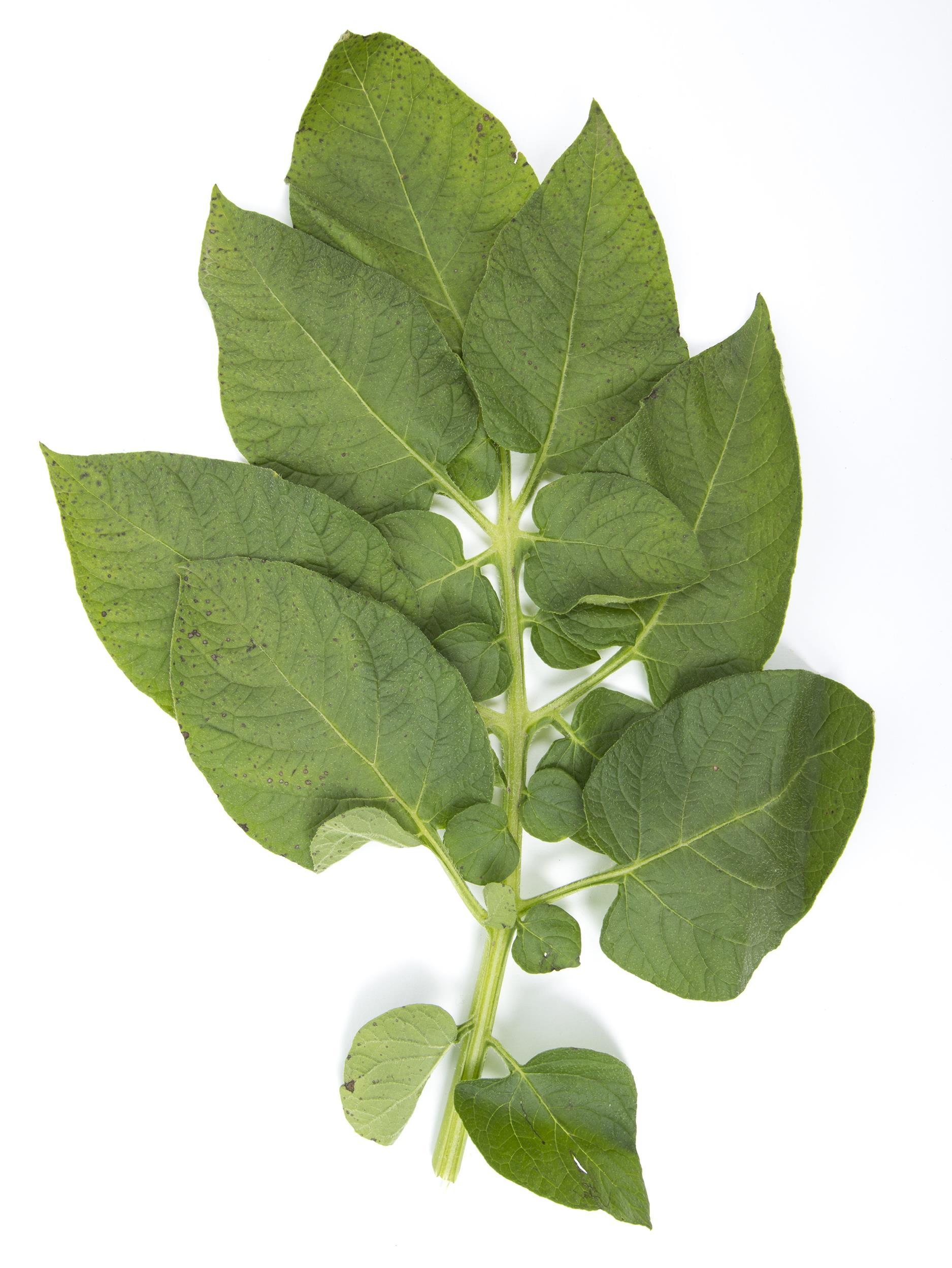 Légende: Fines taches brunes sur feuille de pomme de terre