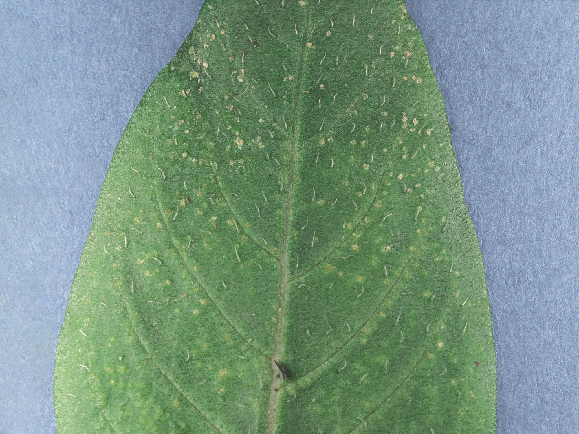 Légende: Petites protubérances vert pâle sur feuille de cuphéa à feuilles d’hysope