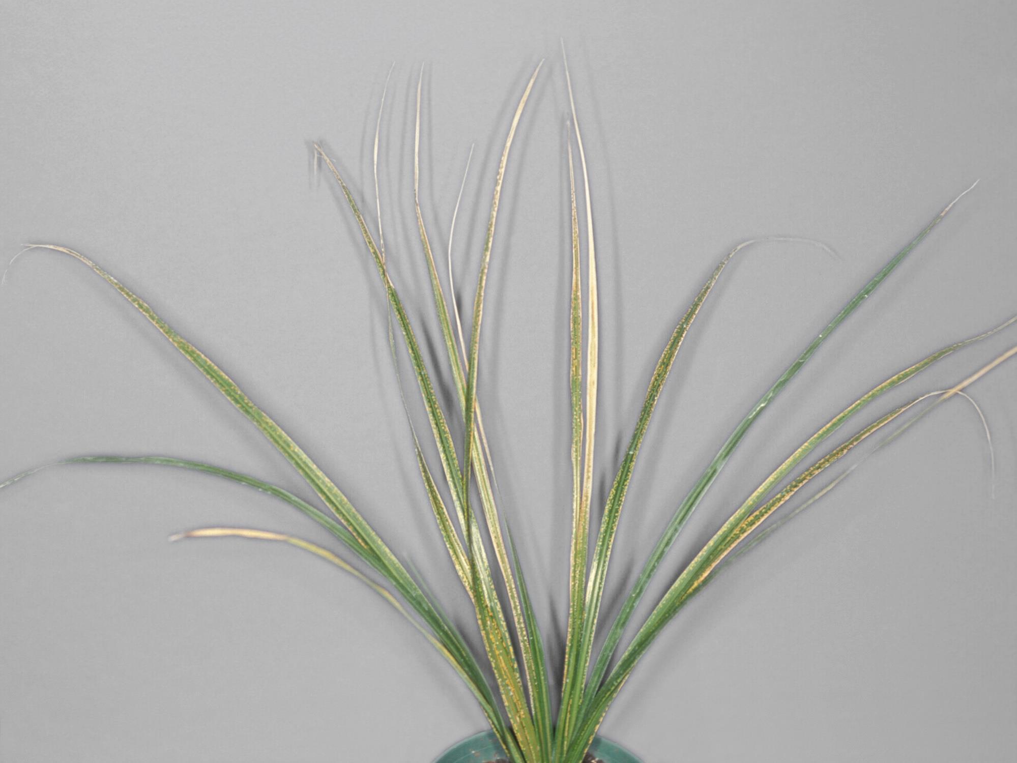 Description: Sur un plant de dracéna des jardins cultivé en serre, présence de nombreuses taches rectangulaires de 1 à 2 mm distribuées principalement à la marge. Les taches sont jaunes à orange, claires, translucides et d’aspect vitreux. L'apex des feuilles est desséché. La base des feuilles présente peu de symptômes. Toutes les feuilles sont affectées. La distribution des symptômes sur les feuilles présente un patron très symétrique de l’extrémité vers le centre. Le résultat des tests de laboratoire s’est avéré négatif pour la détection d’agents pathogènes. Il s'agit probablement du ‘’flecking’’ qui serait en lien avec une intensité lumineuse trop intense. Plusieurs producteurs serricoles rapportent ce problème entre les mois de janvier et avril.