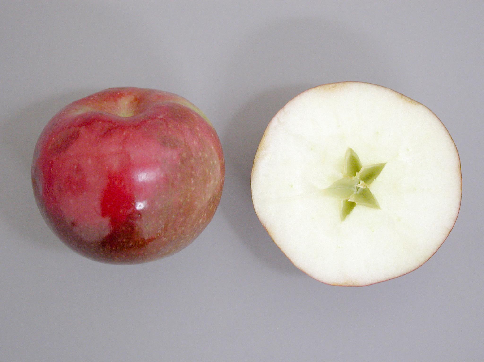 Description: L’épiderme des pommes (cv 'McIntosh') montre un brunissement irrégulier et diffus sur un seul côté du fruit. La chair est peu ou pas affectée. Aucun agent pathogène n’a été détecté des dommages. Les symptômes s’apparentent à ceux de l’échaudure, car le brunissement est irrégulier et diffus, localisé principalement sur la partie non rougie du fruit et ne pénètre pas ou très peu dans la chair. Les pommes avaient été récoltées à la mi-septembre et les symptômes ont été observés à la mi-mai sur près de 40 % des pommes entreposées sous atmosphère contrôlée.