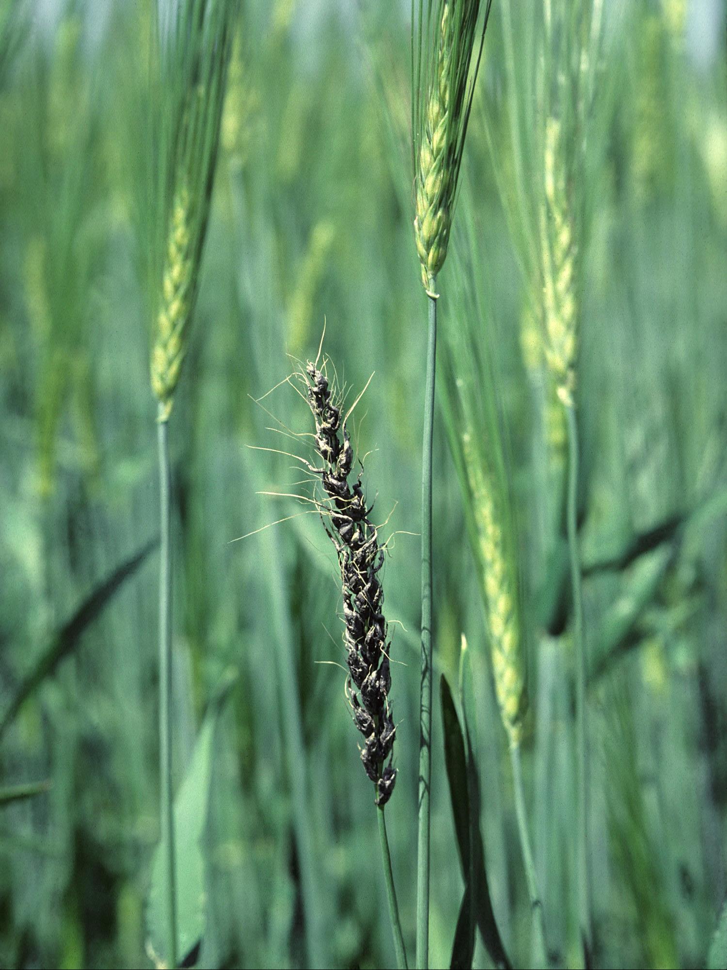 Légende: Spores noires d'Ustilago sur épi d'orge