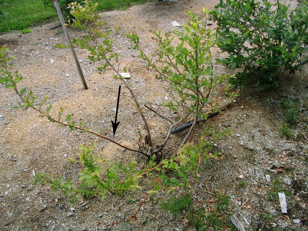 Légende: Défoliation de la base des tiges de bleuet en corymbe