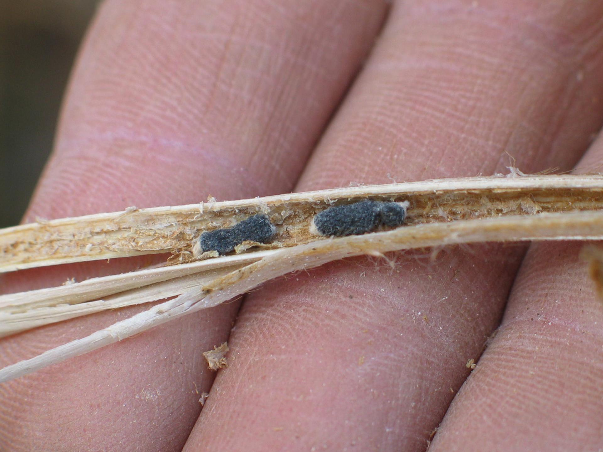 Légende: Sclérotes à l'intérieur d'une tige de soya