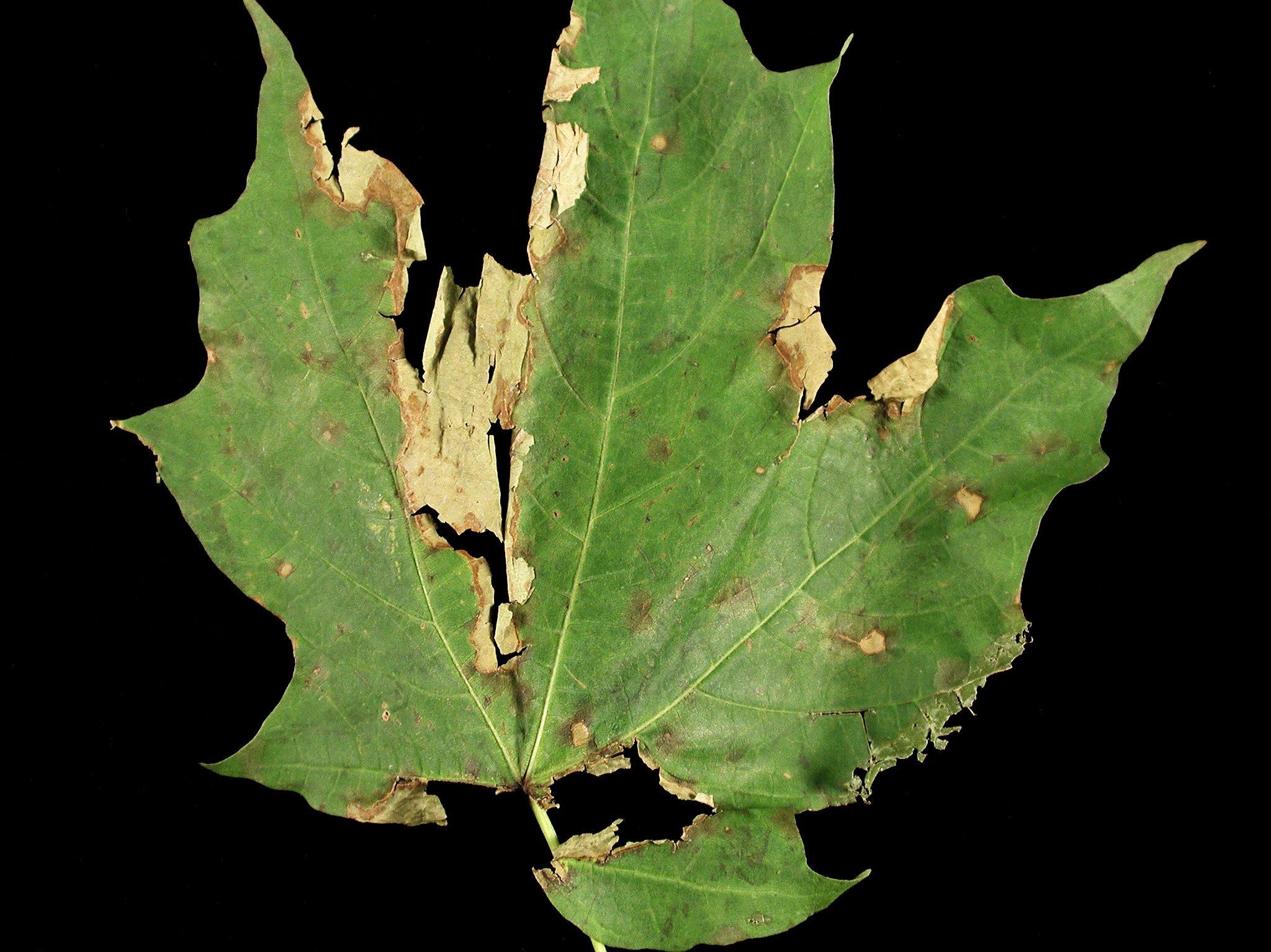 Légende: Taches et brûlures sur feuille d'érable