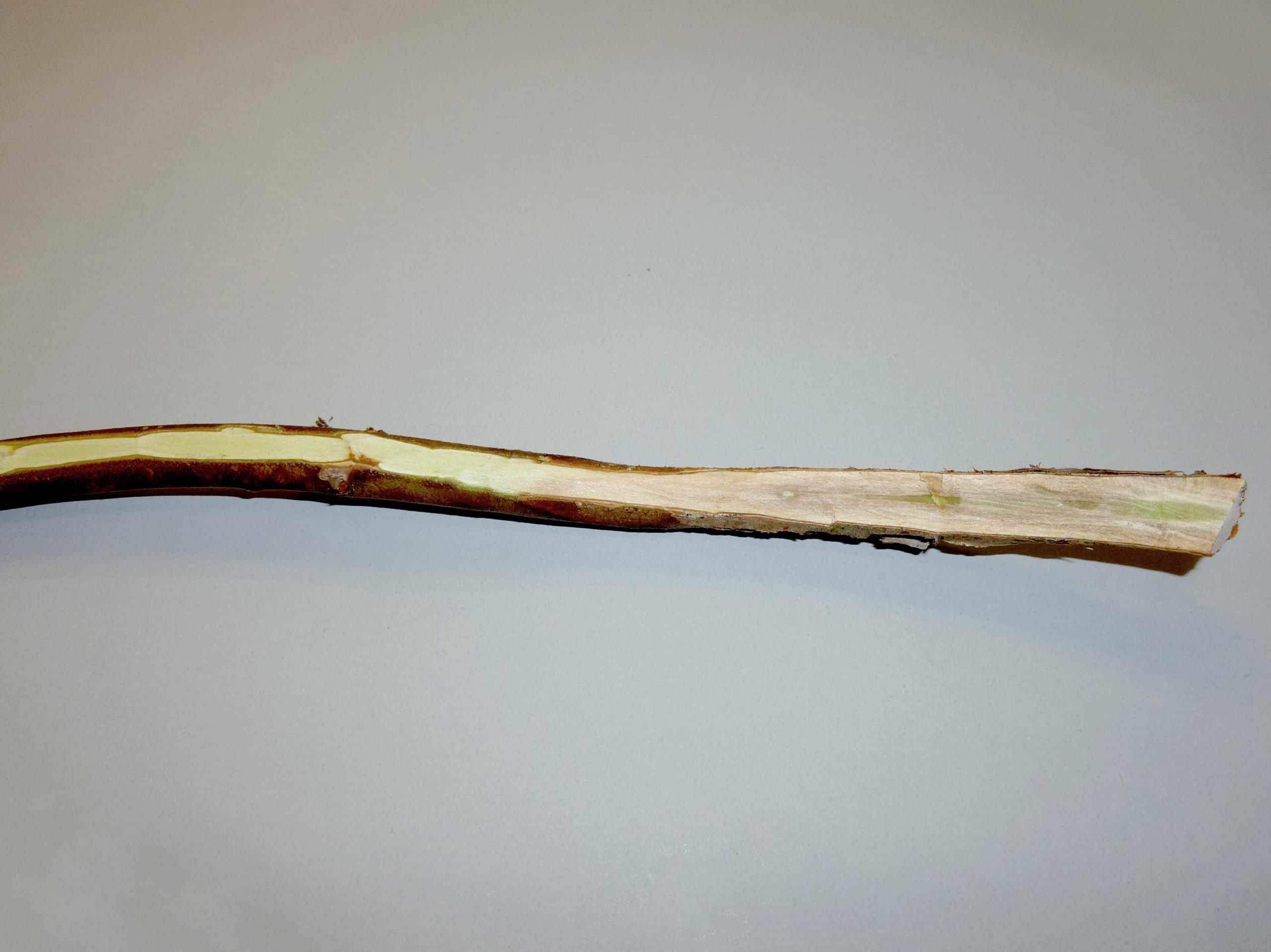 Légende: Brunissement du bois dans la partie basale d'une tige de bleuet en corymbe