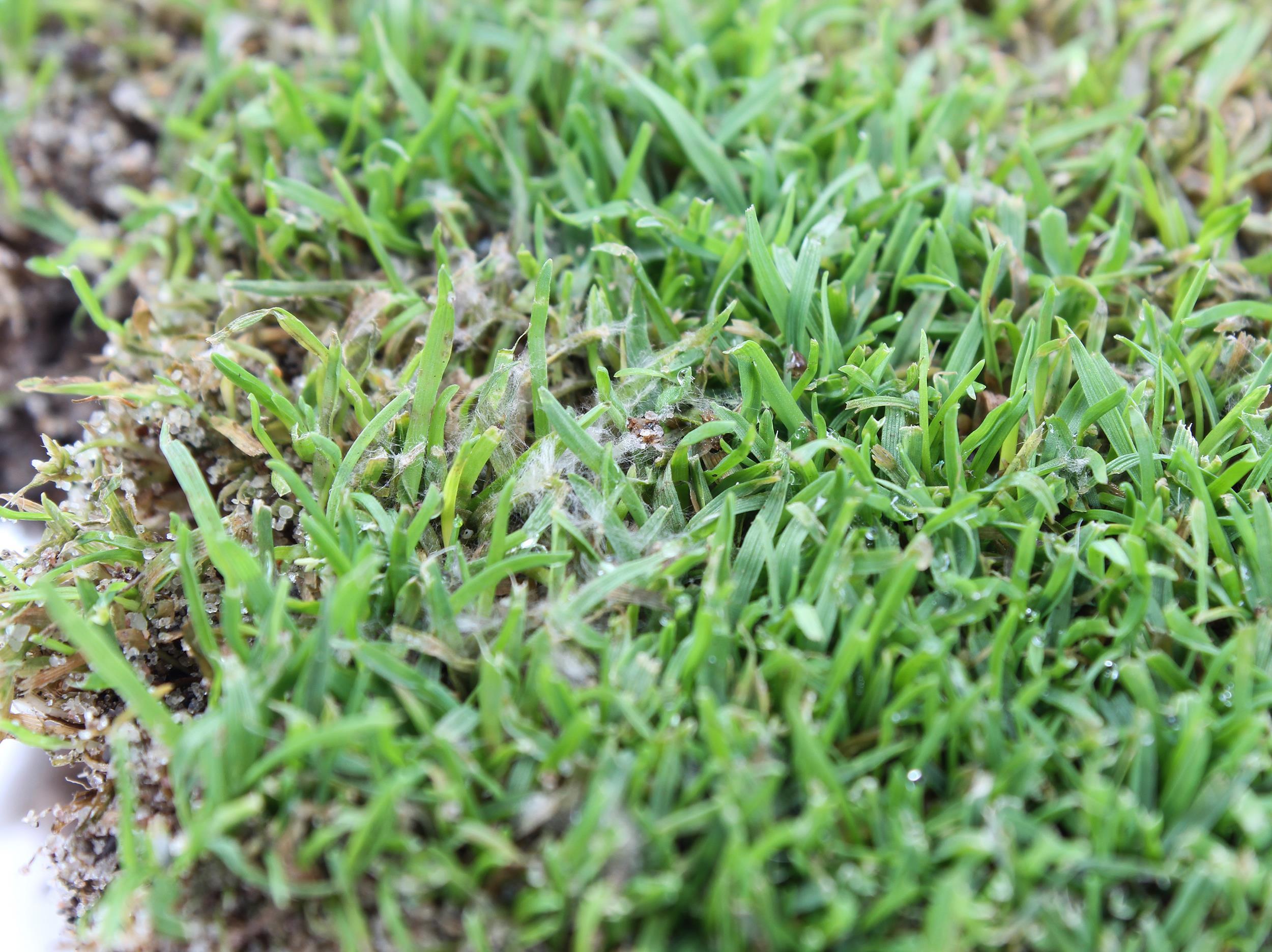 Description: Un emporte-pièce de gazon de terrain de golf (pâturin annuel et agrostide) comprenant de nombreuses plantes montre une brûlure humide des feuilles. Les feuilles basales sont touchées en premier et un mycélium blanc est présent dans les zones de feuilles brûlées. Les tests de biologie moléculaire (PCR) ont révélé la présence du champignon Microdochium nivale, champignon qui cause la moisissure nivéale rosée chez les graminées à gazon.   Le conseiller agricole mentionne que le drainage du site dans le secteur problématique est passable et des conditions climatiques adverses ont été observées (pluie abondante, humidité relative élevée, une température froide).