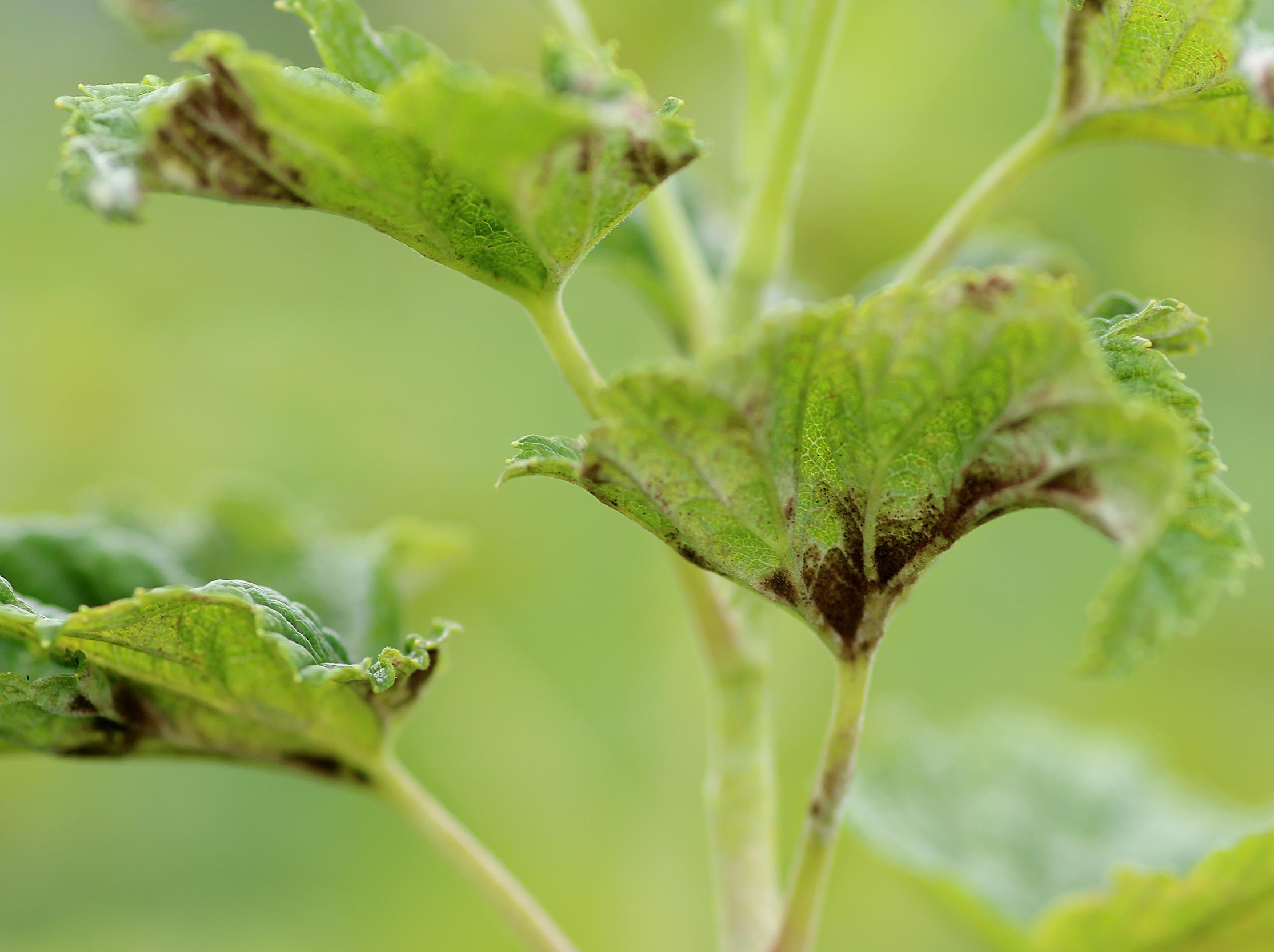 : Oïdium brun sur feuilles de cassissier.