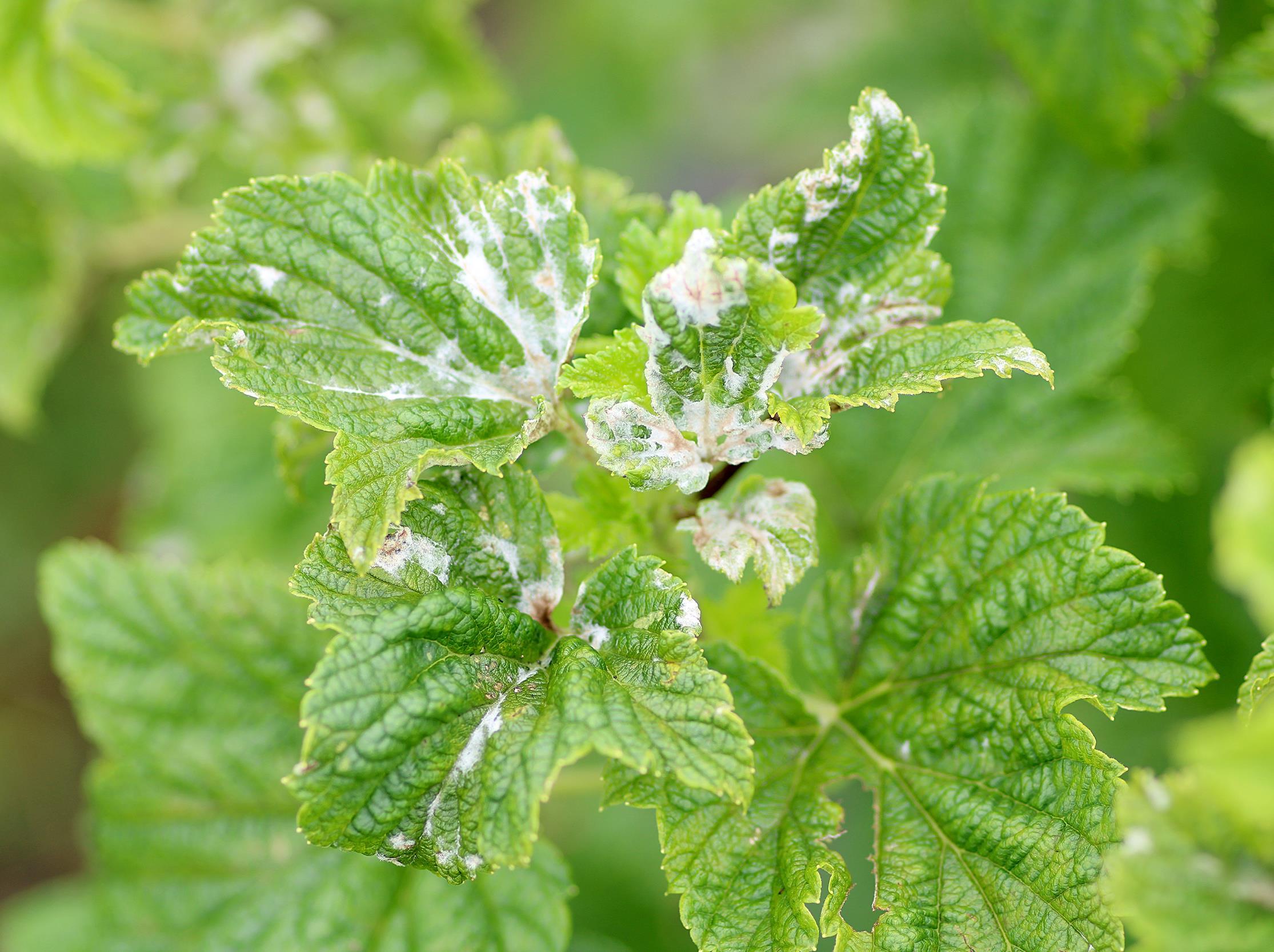 : Oïdium brun sur feuilles de cassissier.