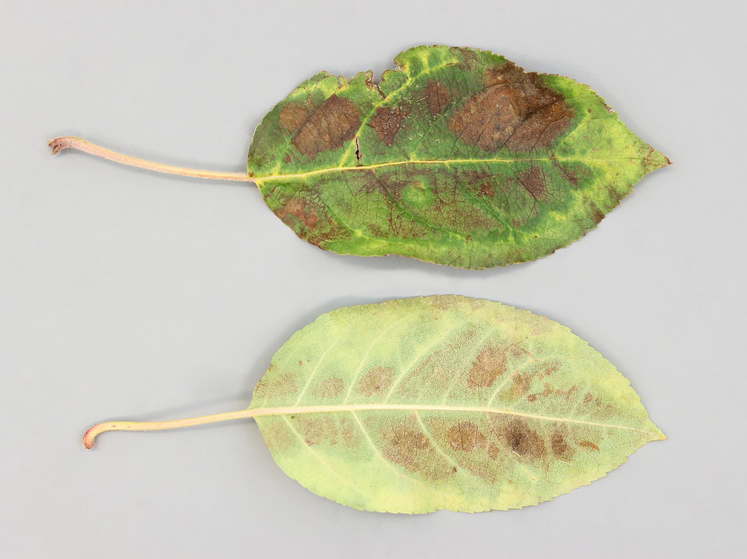 Légende: Comparaison des taches sur les deux faces des feuilles d'un pommier