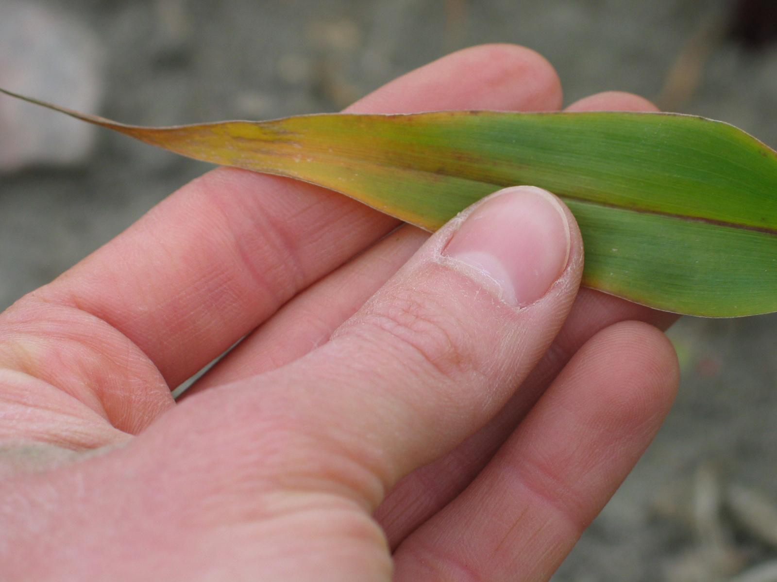 Légende: Extrémité d'une feuille de maïs grain et fourrager jaune à orange