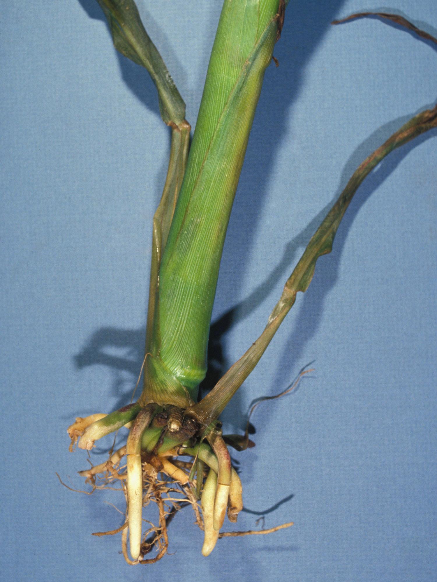 Légende: Racines d'ancrage de maïs grain et fourrager déformées