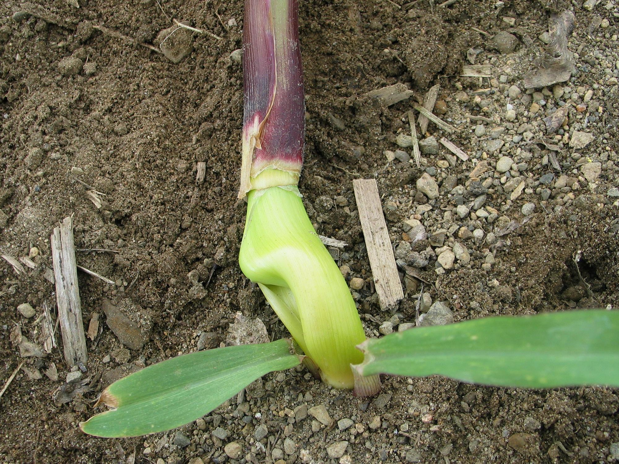 Légende: Malformation du collet d'un plant de maïs grain et fourrager