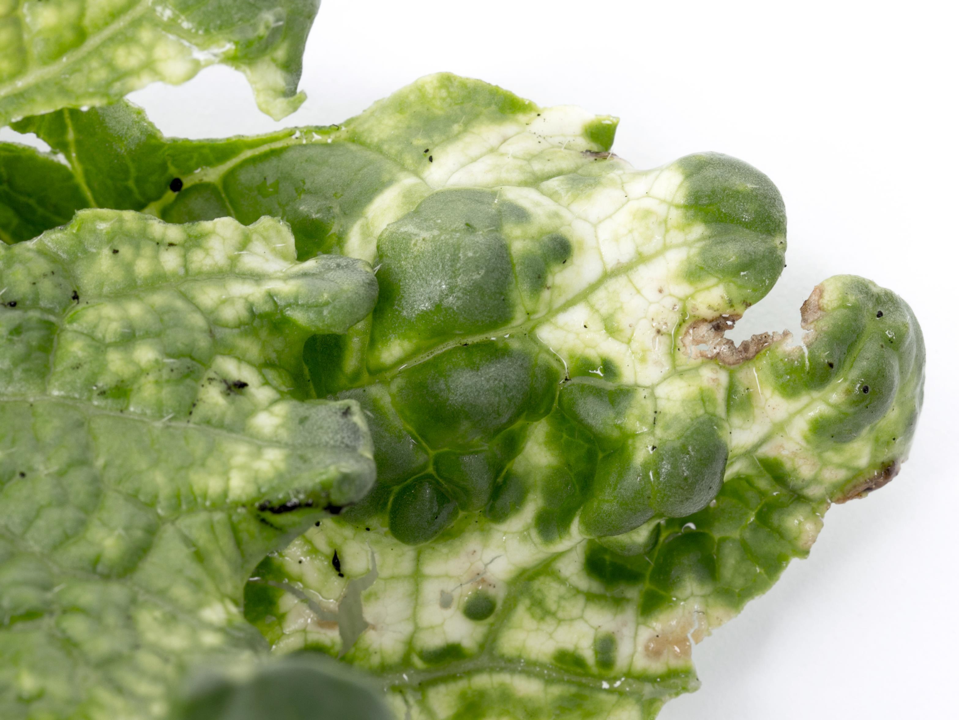 Légende: Feuilles de chou chinois avec blanchiment et nécrose