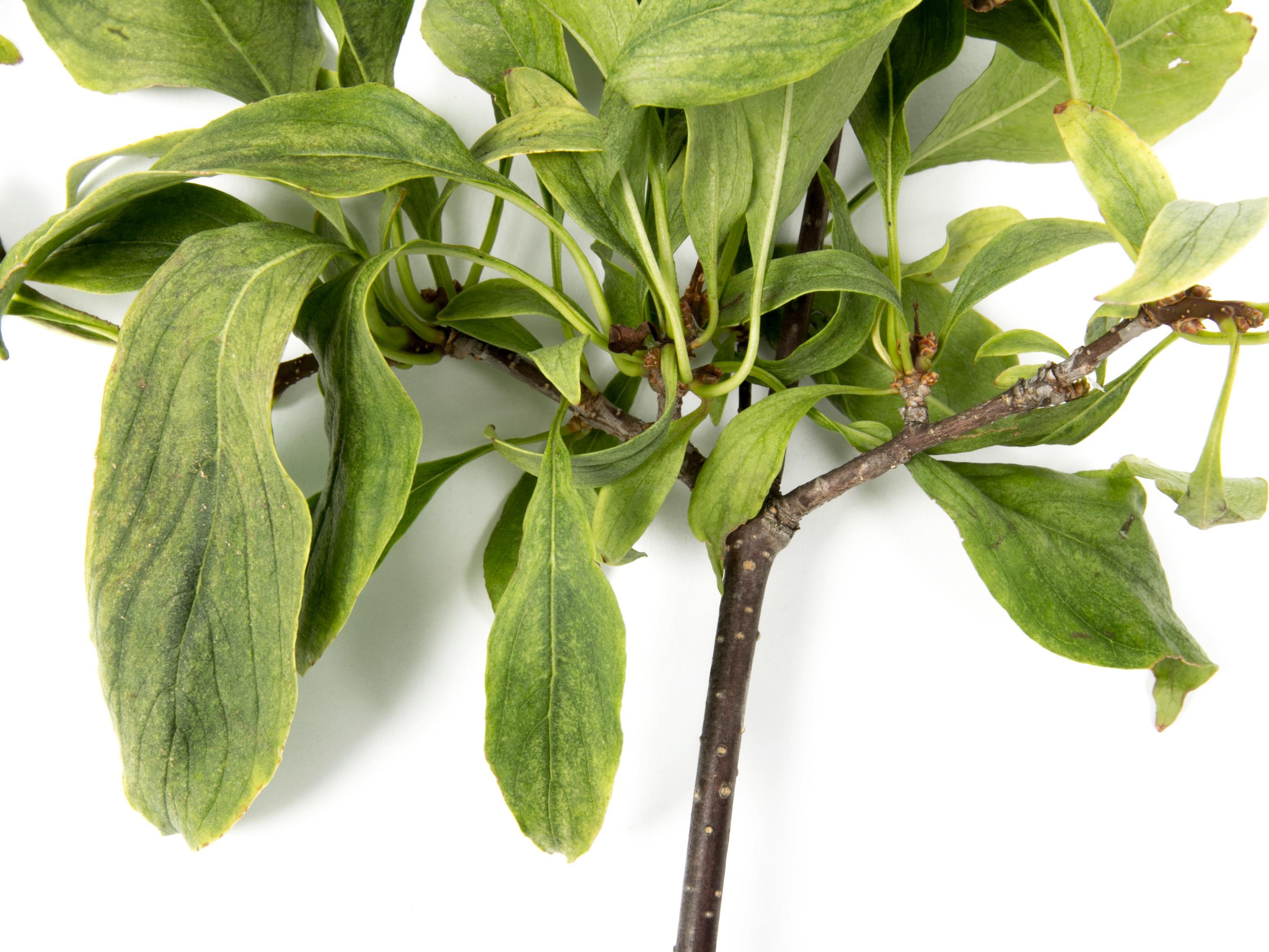 Description: Les feuilles médianes et terminales d’un lilas japonais sont rabougries et déformées. Un jaunissement internervaire et à la marge du limbe débute. Environ 50% des arbres de l’aménagement paysager sont flétris et démontrent une faible croissance. Les symptômes observés sont attribuables à la présence de glyphosate dans les tissus. Un dosage chimique a révélé la présence de l’herbicide à une concentration suffisamment élevée pour causer les symptômes observés. Les symptômes sont apparus graduellement, suite à la pulvérisation au sol de l’herbicide, à proximité des arbres en croissance.