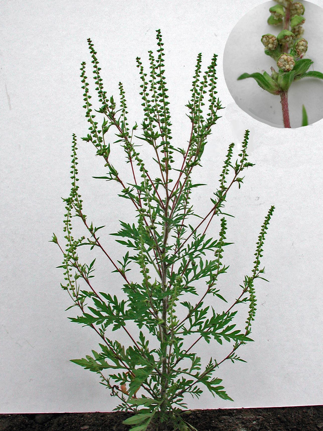 : Plant, stade floraison et vue rapprochée des capitules mâles