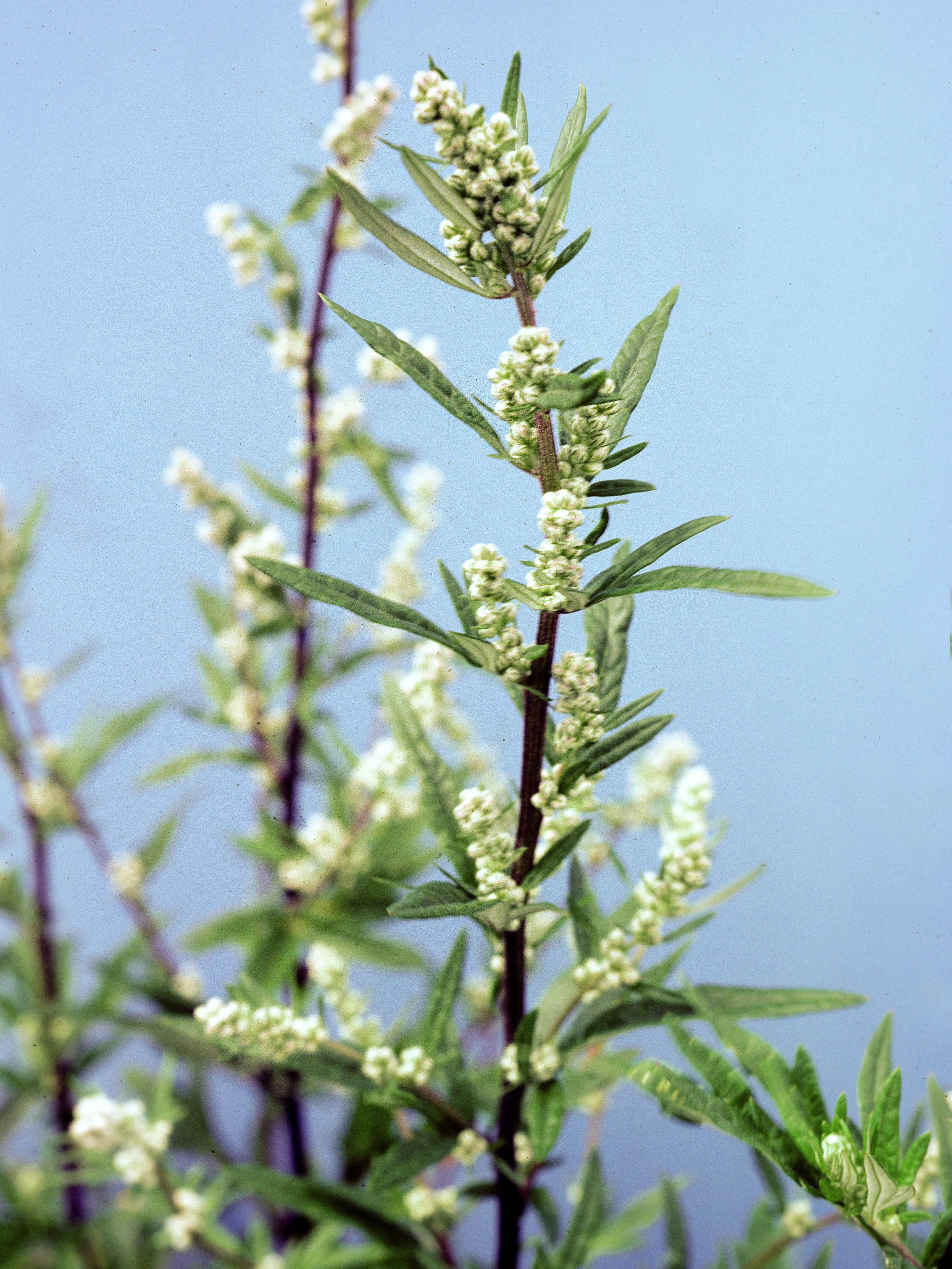 : Capitules blanchâtres regroupés en grappes au sommet des tiges et des rameaux