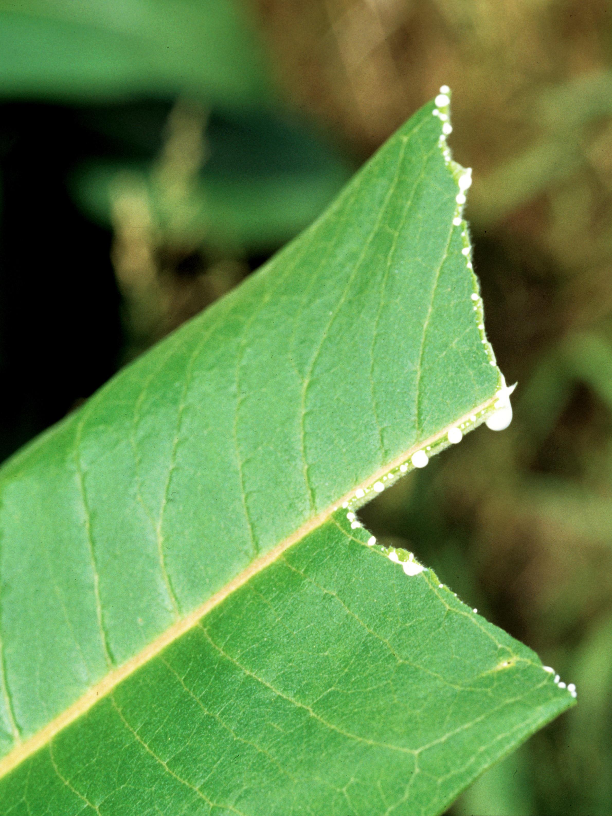 Légende: Feuille brisée, présence de latex