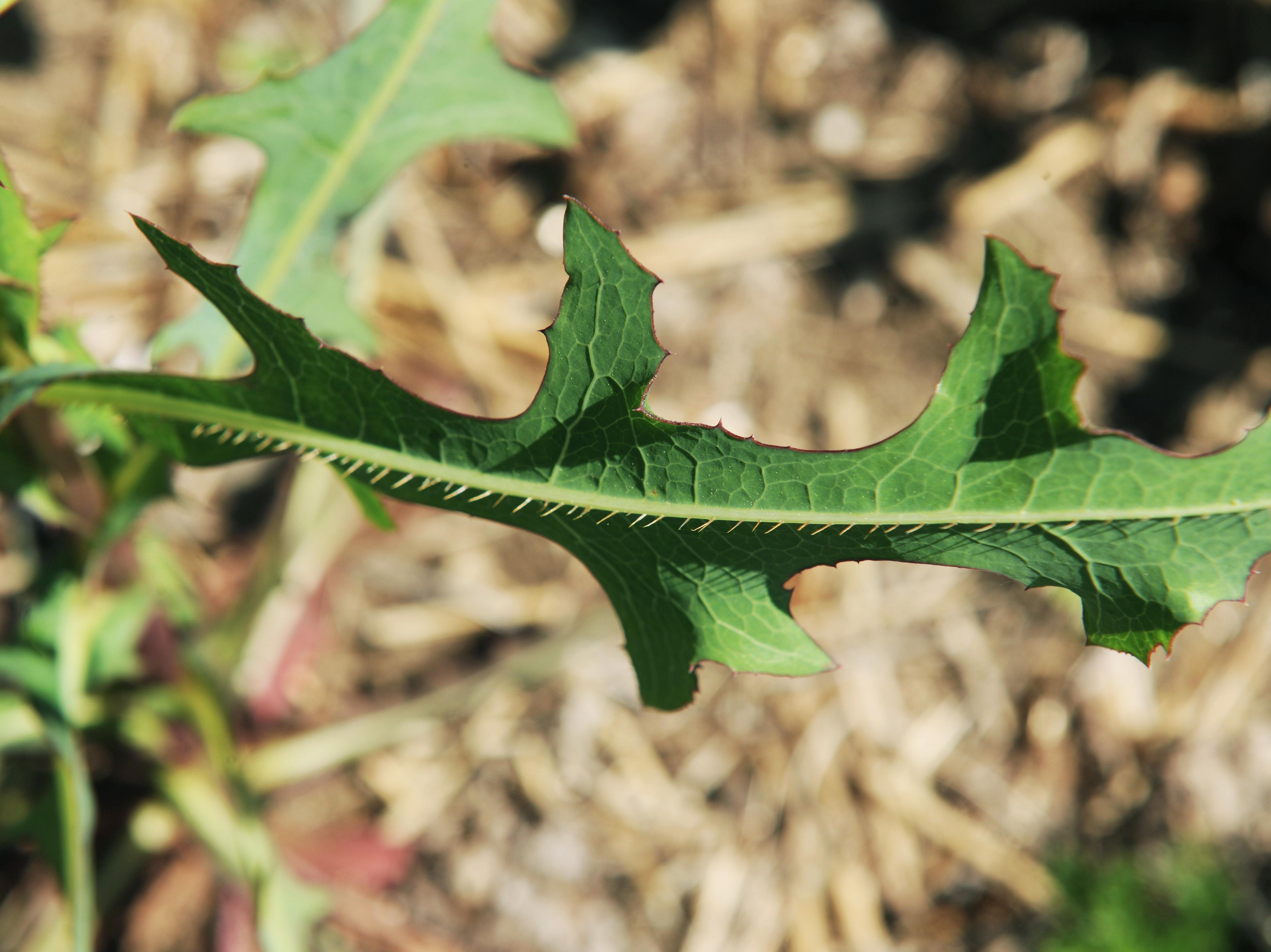 : Feuille caulinaire, ligne d'épines sous la feuille à la nervure centrale