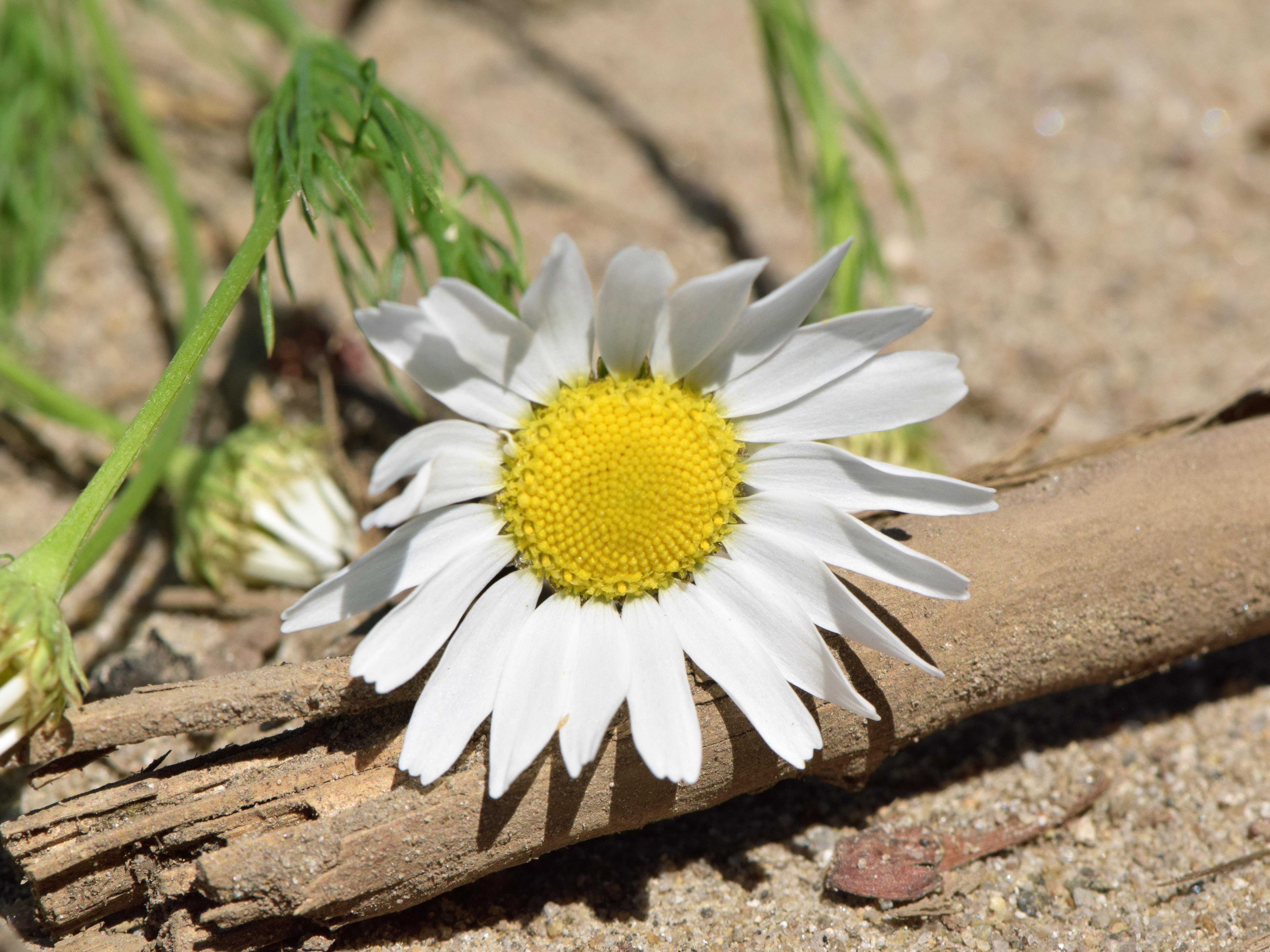 : Fleur composée de fleurons ligulés blancs et de fleurons tubulés jaunes