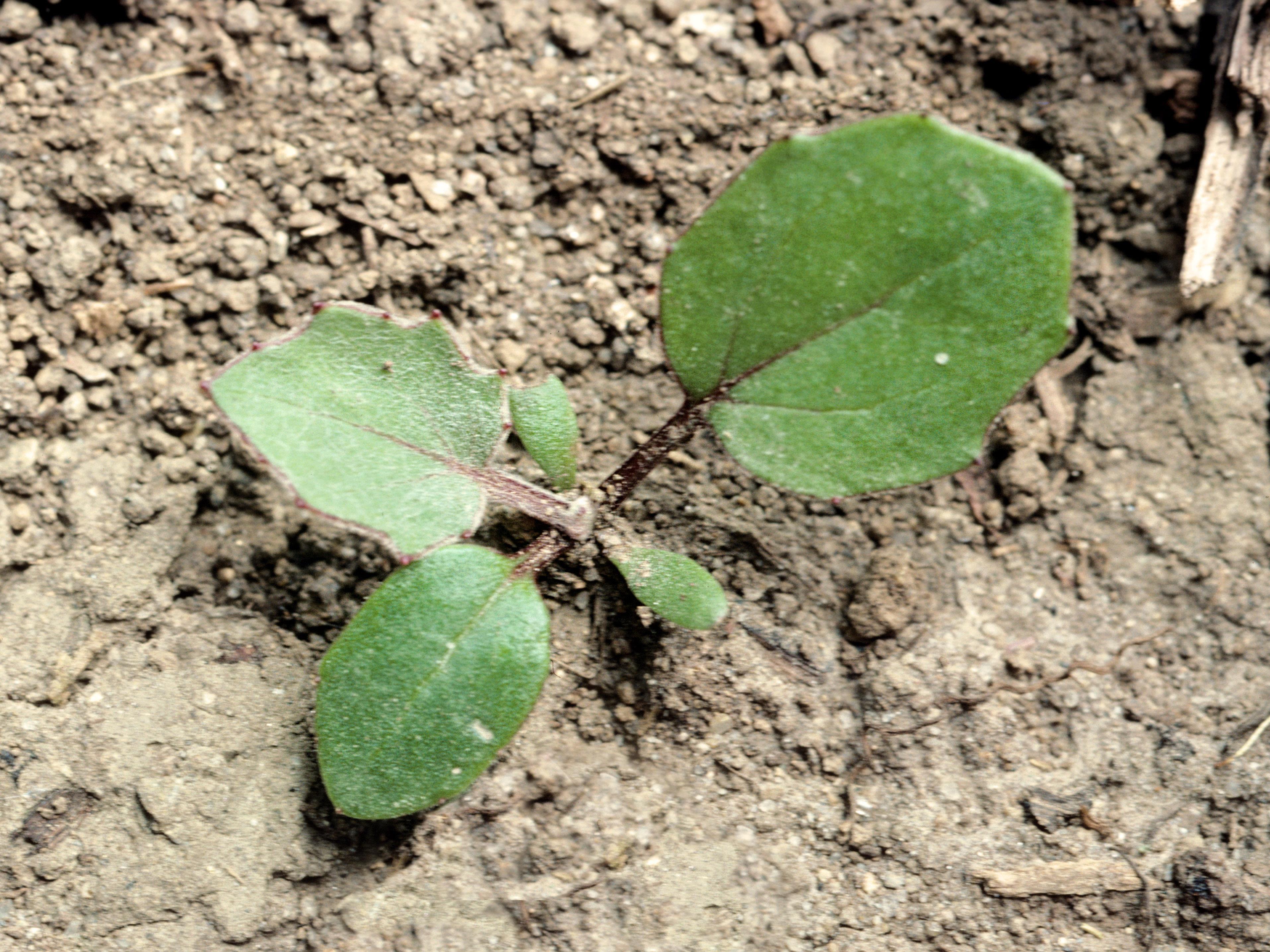 Légende: Plantule, stade 3 feuilles, cotylédons de forme oblongue