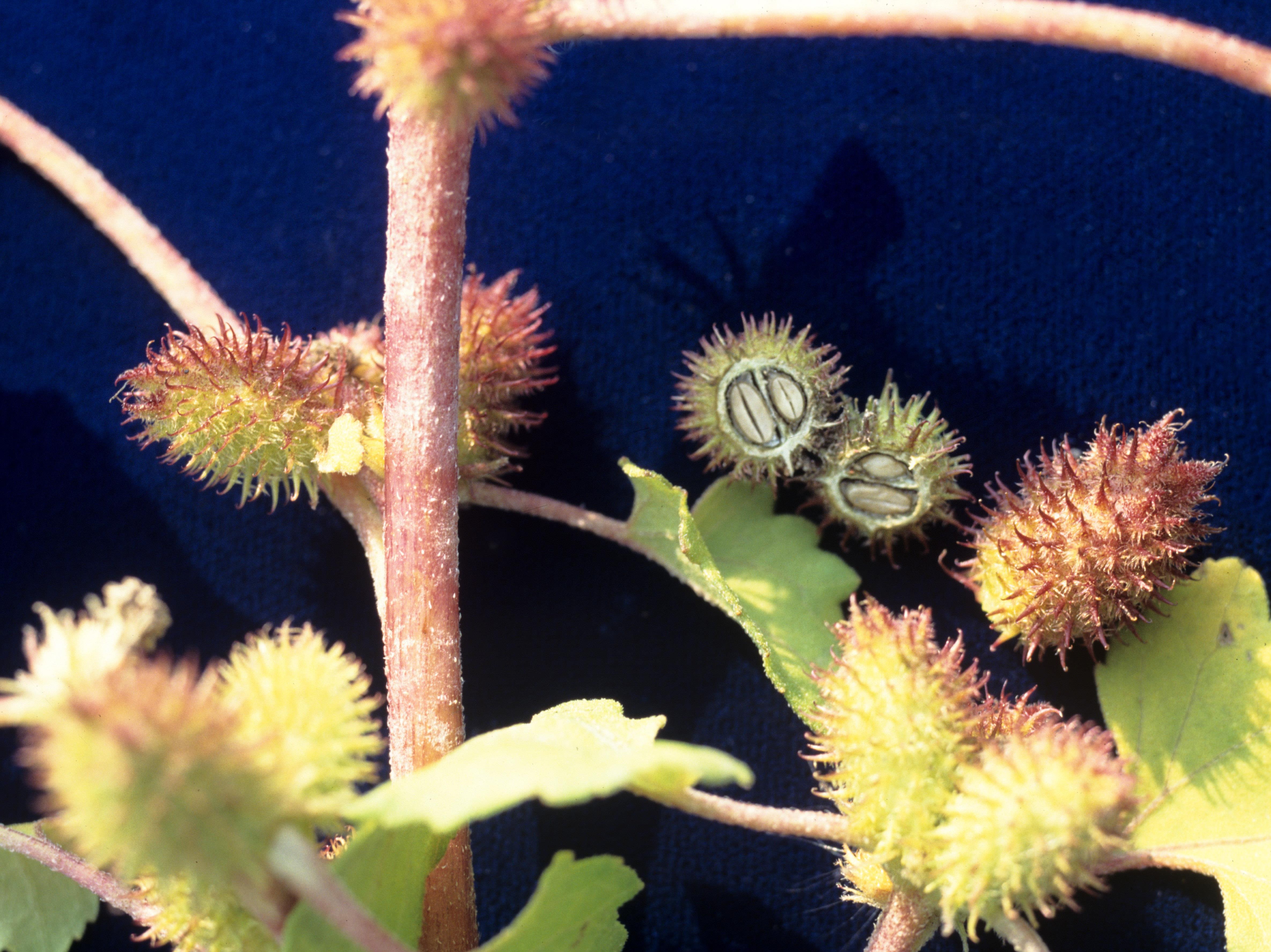 : Capsules à parois épaisses et dures, couvertes d'épines crochues et contenant 2 graines