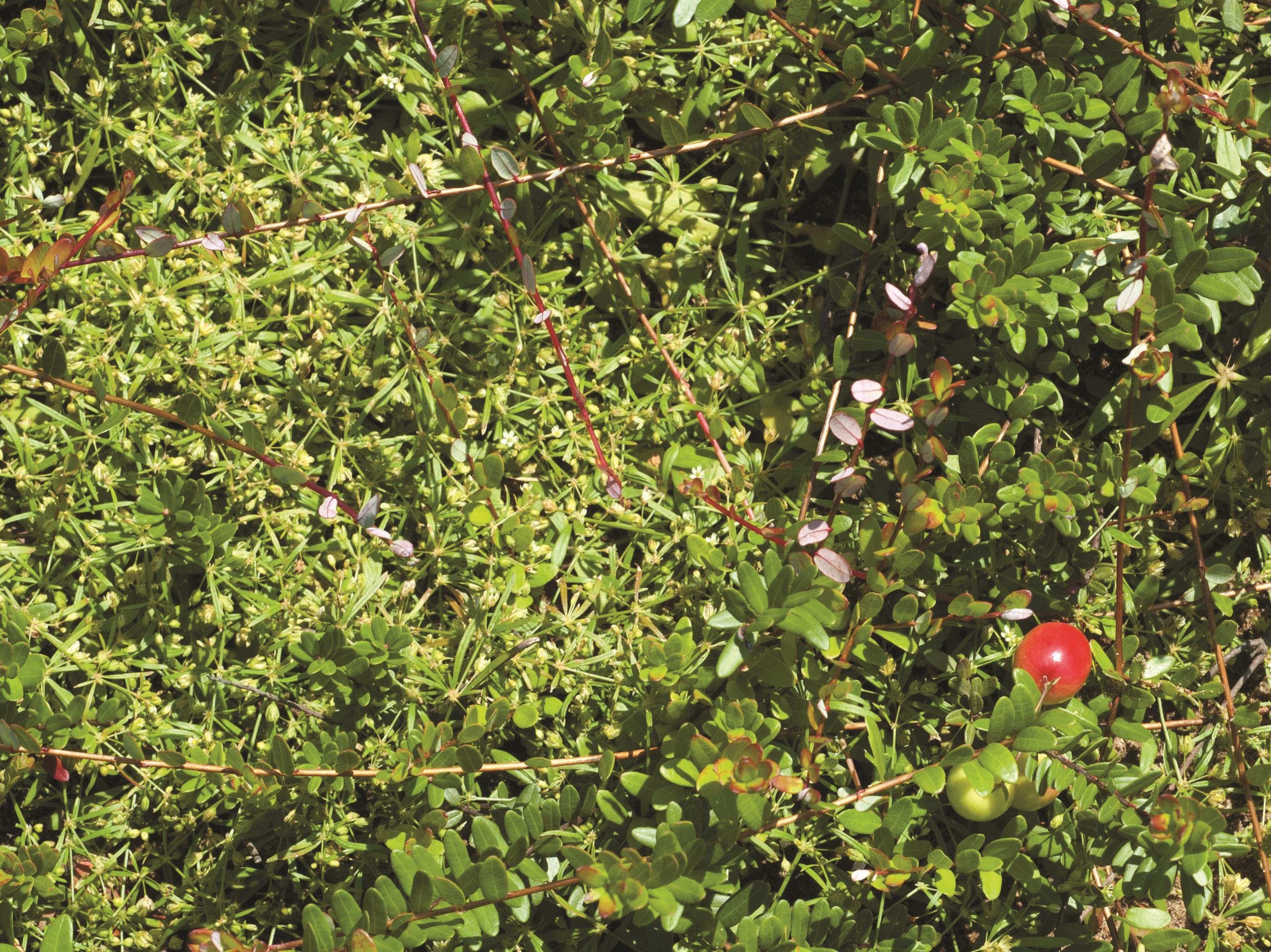 Légende: Vue rapprochée d'une colonie dans un champ de canneberges