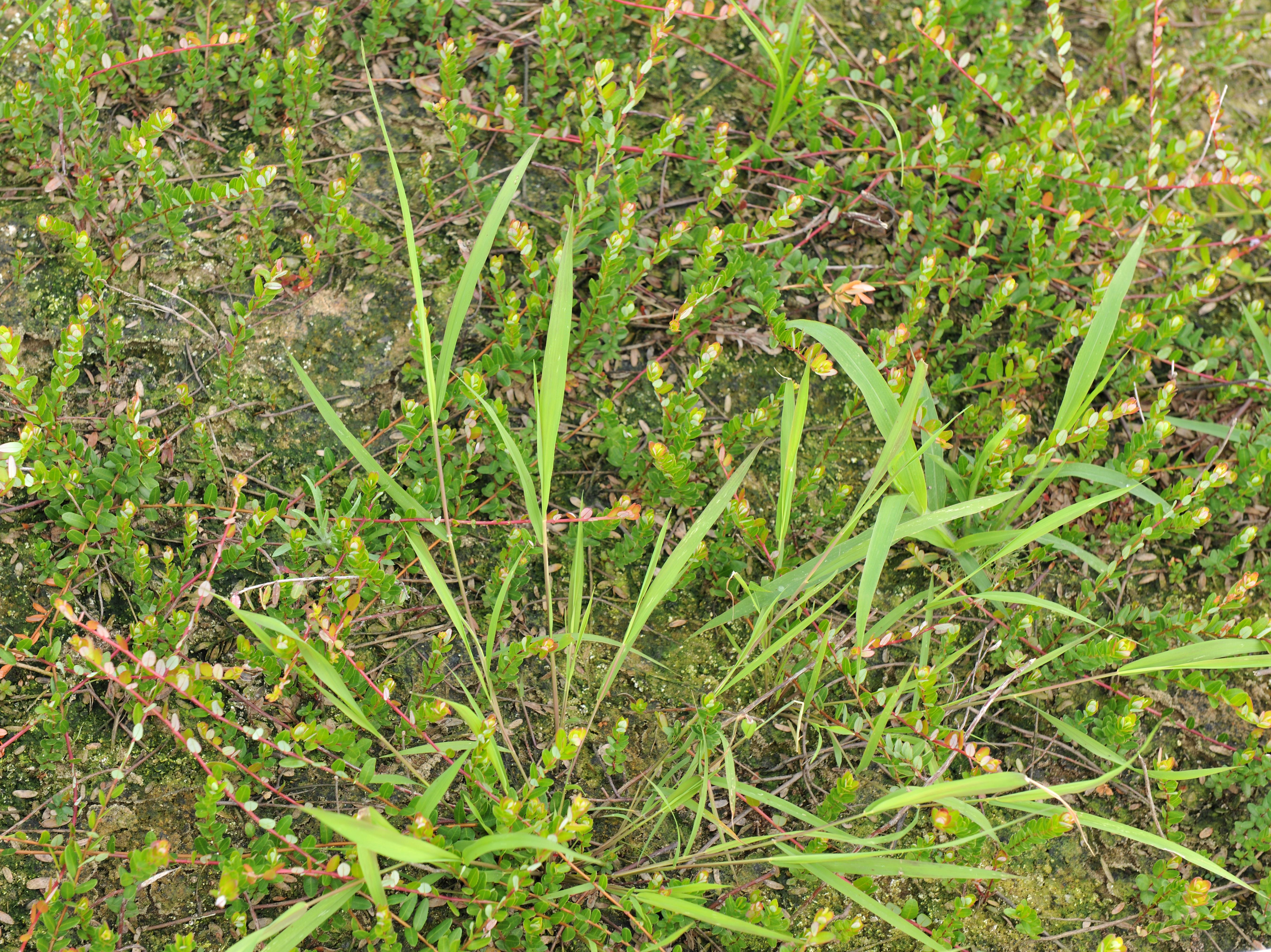 Légende: Jeune plant dans un champ de canneberges