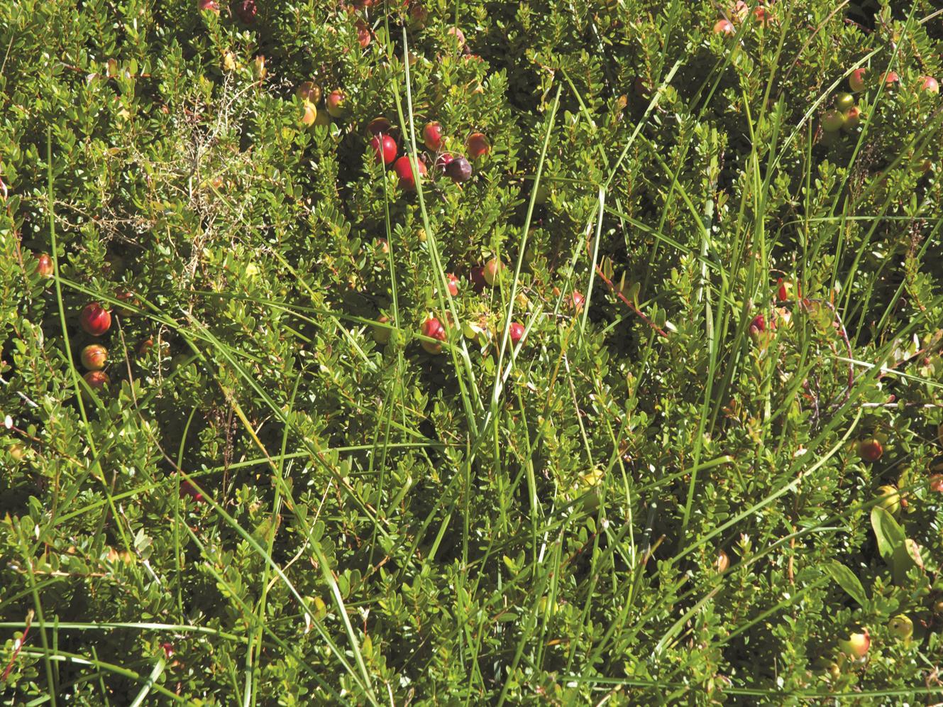 : Infestation en bordure d'un champ de canneberges, vue rapprochée