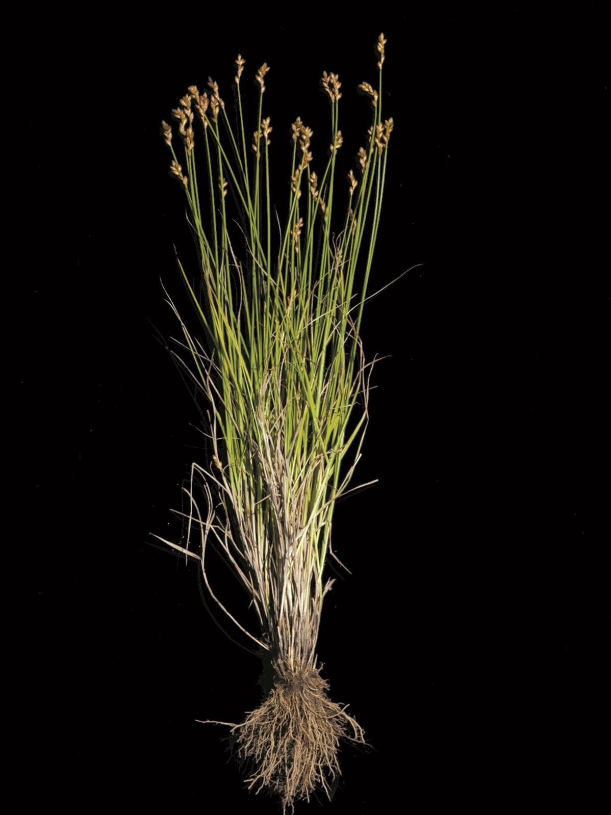 Légende: Plant complet, rhizomes courts et racines fibreuses