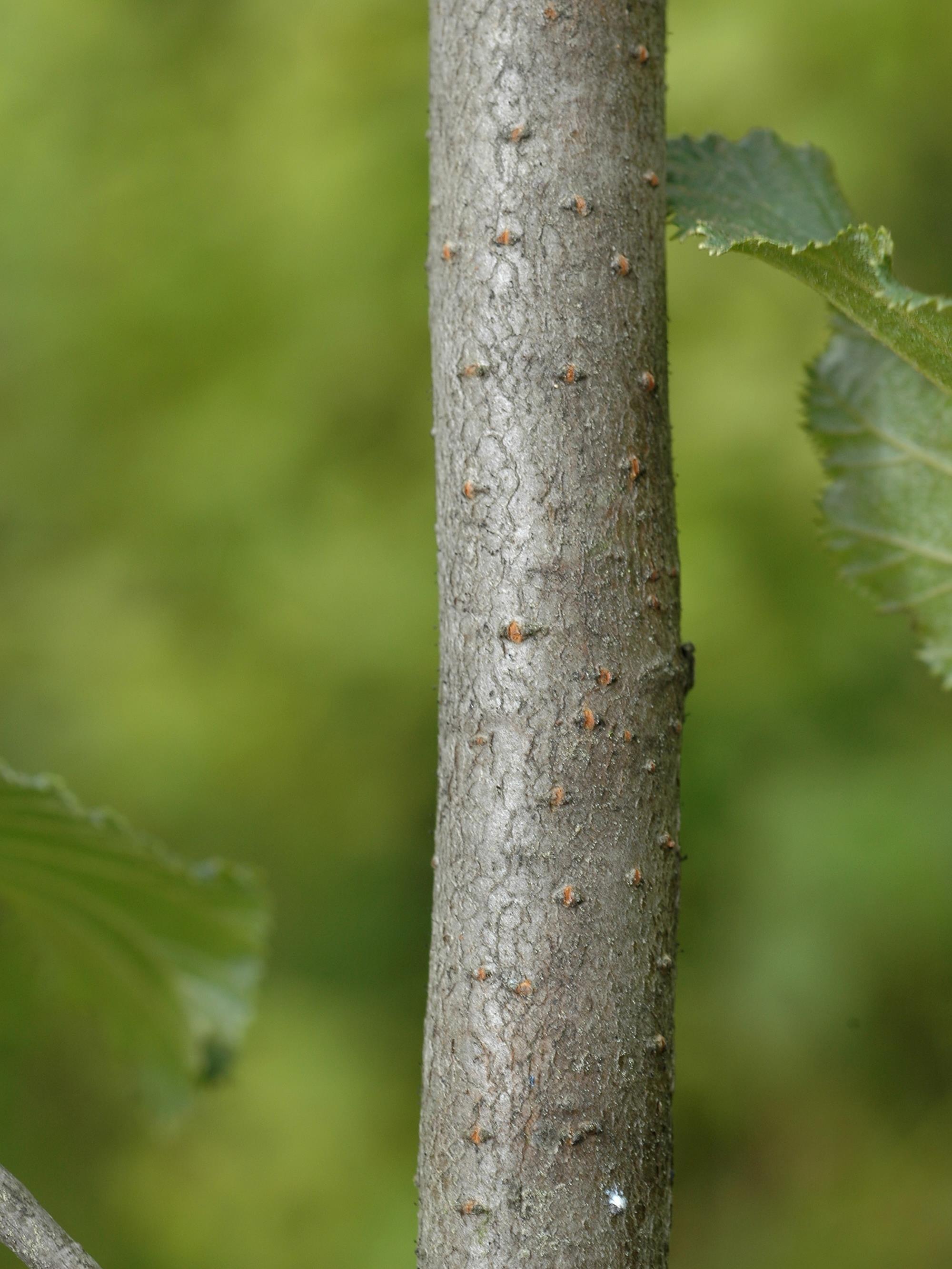 : Écorce grisâtre, lenticelles petites et peu apparentes