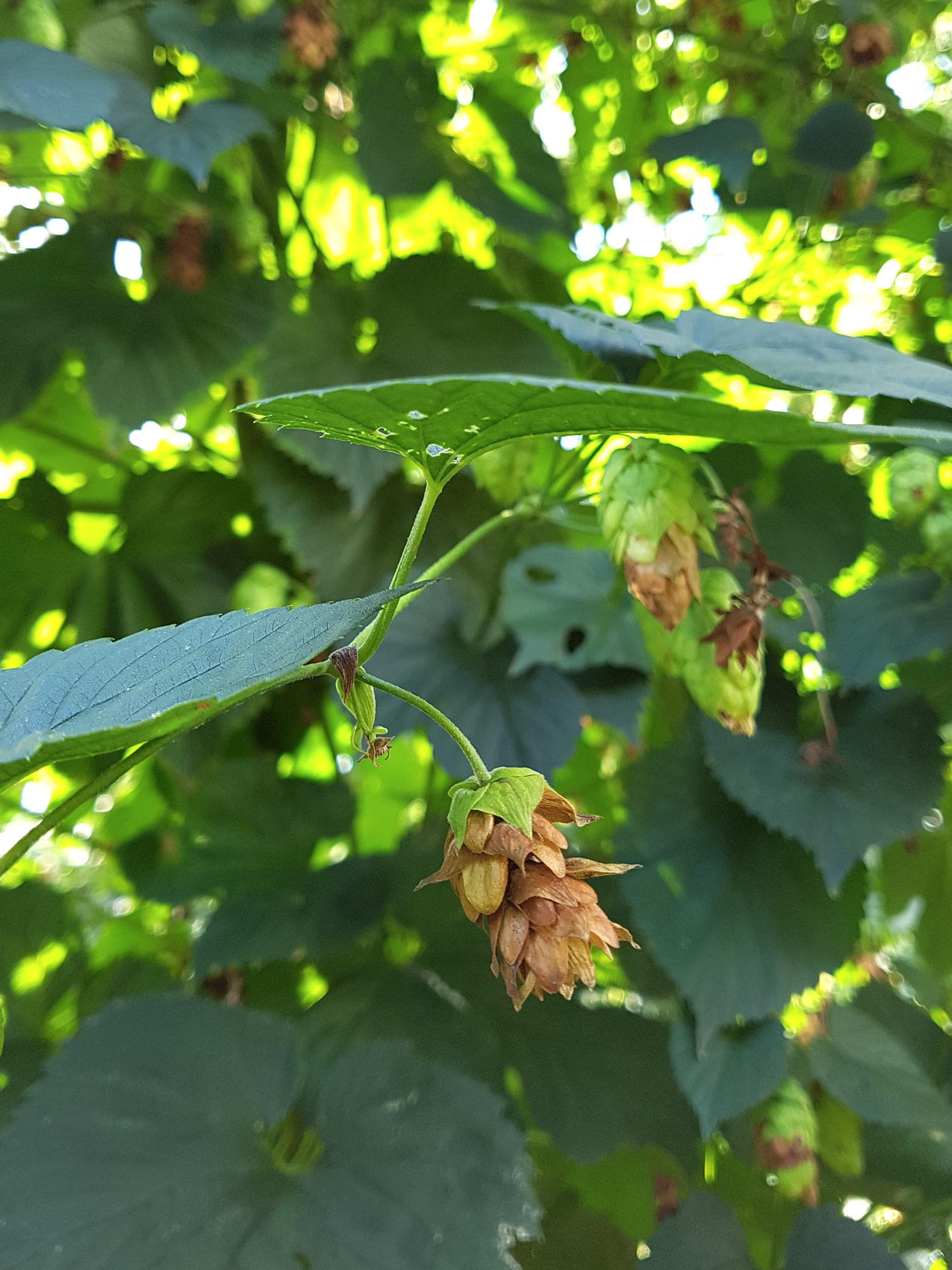 : Inflorescence de houblon femelle atteinte de la brûlure à halo.