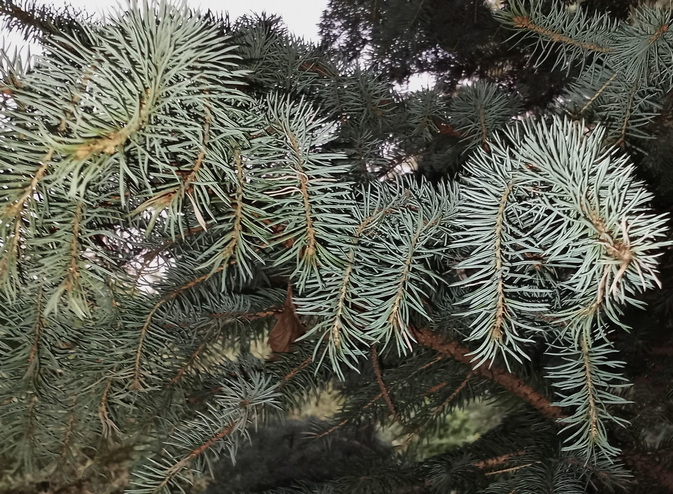 Description: Les tiges et les rameaux terminaux d'une épinette du Colorado (Picea pungens) sont courbés vers le bas (épinastie). Ce symptôme est apparu graduellement et est généralisé sur l'arbre. Une application de dicamba, un herbicide phytohormonal, a été effectuée sur la pelouse à proximité de l'arbre, dans des conditions de chaleur et de sécheresse importantes. Un dosage chimique a confirmé la présence de dicamba, à une concentration élevée dans les tissus de l'arbre, ainsi que de la perméthrine, un insecticide (groupe 3A), à une faible concentration, cinq semaines après l'application sur la pelouse. Les symptômes de malformation sont typiques de ceux retrouvés avec les herbicides phytohormonaux, tel le dicamba. Les conditions de déficit hydrique (sécheresse, chaleur, érosion éolienne, etc.) au moment de l'application ont accéléré la pénétration et le transport des produits à l’intérieur de l’arbre, ce qui a amené une malformation des tissus et éventuellement la lyse des cellules méristématiques (dessèchements, brûlures et défoliation), non visible ici. Dans une moindre mesure, la perméthrine peut amener un assèchement temporaire des tissus, aussi exacerbé par les conditions environnementales.
