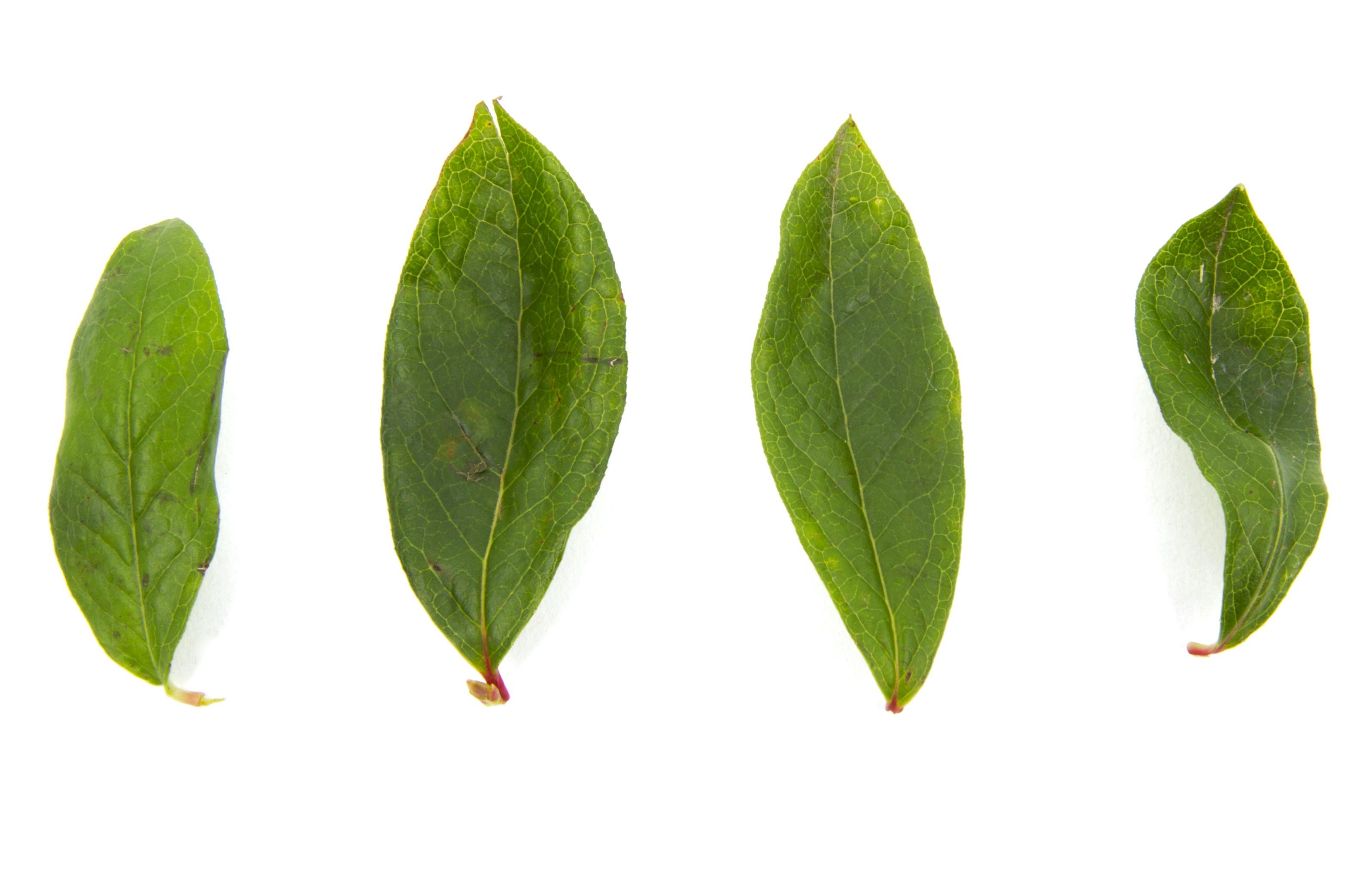 Description: Les feuilles d’un plant de bleuet en corymbe (Vaccinium corymbosum) montrent des malformations (déformation vers le bas à partir de la nervure centrale, gaufrure des tissus, torsion) et sont flétries. Ces symptômes sont apparus graduellement sur l’arbuste, situé à proximité d’une pelouse. Une application de dicamba, un herbicide phytohormonal, a été effectuée sur la pelouse, dans des conditions de chaleur et de sécheresse importantes. Une analyse chimique a confirmé la présence de dicamba, à une concentration élevée, cinq semaines après son application. Les symptômes de malformation sont typiques de ceux retrouvés avec les herbicides phytohormonaux, tel le dicamba. Les conditions de déficit hydrique (sécheresse, chaleur, érosion éolienne, etc.) au moment de l'application ont accéléré la pénétration et le transport du produit à l’intérieur de la plante, ce qui a amené une malformation des tissus.