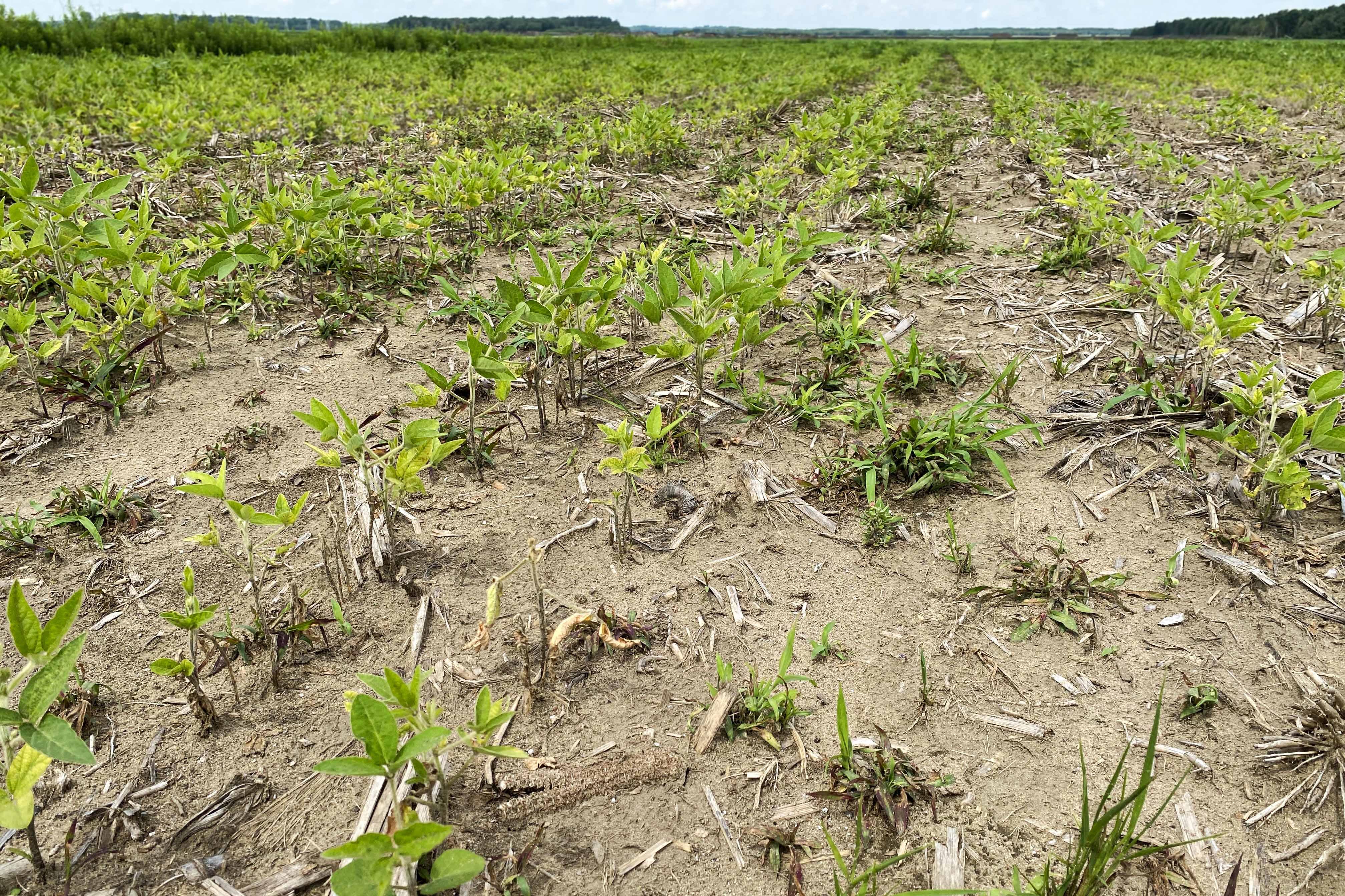 : Champ de soya affecté par le nématode à kyste du soya (Heterodera glycines)