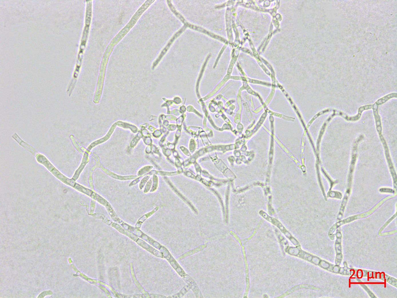 : Microdochium sp. isolé sur milieu SNA à partir de racines de pâturin annuel.
