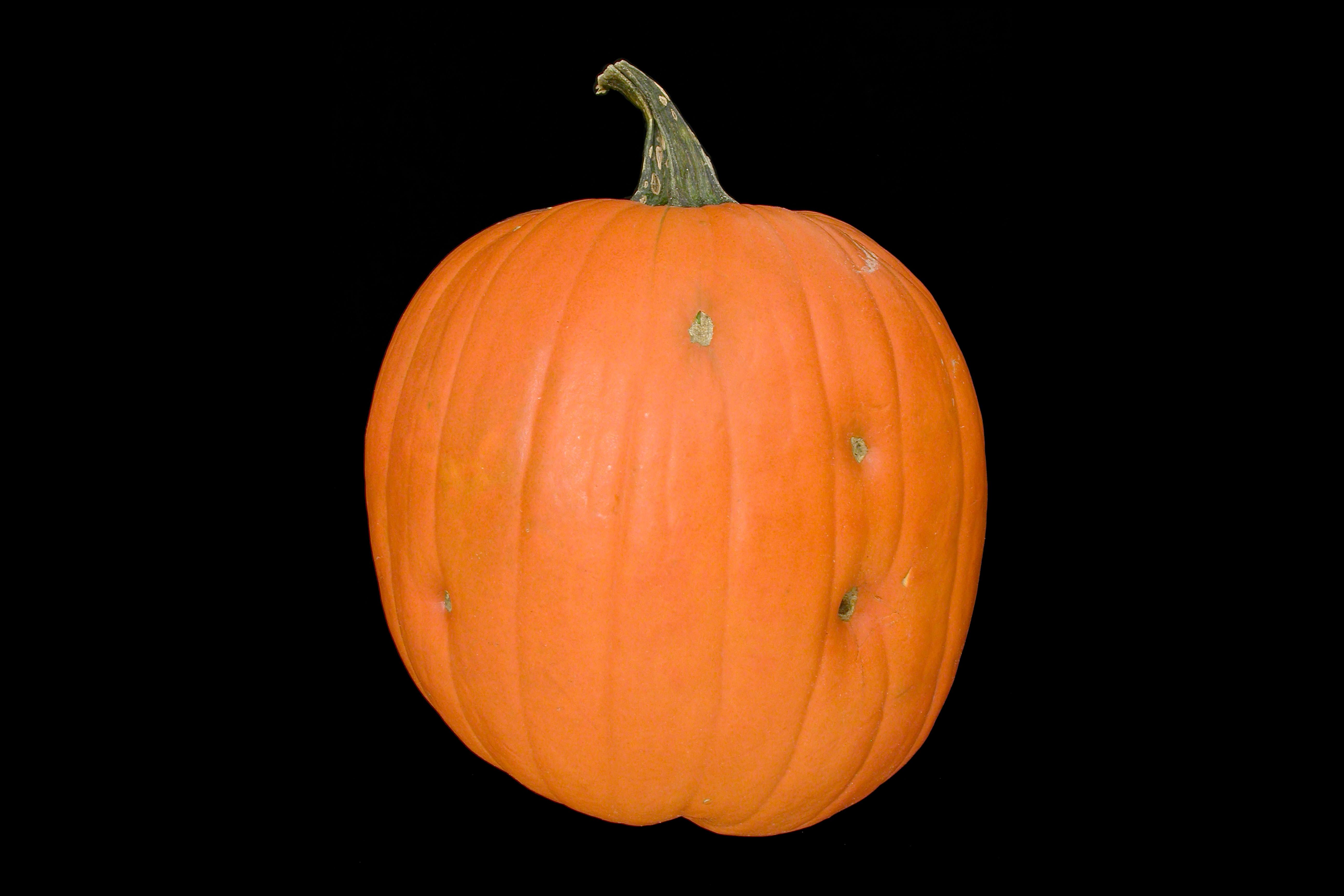 Description: Sur l'épiderme d’une citrouille provenant d’un champ, présence de quelques lésions beiges, plutôt circulaires, plus ou moins profondes et localisées sur un seul côté du fruit. L'épiderme se renfonce dans la chair vis-à-vis ces lésions. Les observations microscopiques n'ont pas révélé la présence d'agents pathogènes sur ces lésions. Les dommages sont superficiels et lorsque les lésions sont plus profondes, les tissus sous-jacents sont subérisés. Il est rapporté sur la fiche de renseignements qu'un épisode de grêle est survenu dans la région un mois avant l'envoi de cet échantillon. Compte tenu des symptômes non évolutifs et localisés sur un seul côté du fruit, il s'agit fort probablement de dégâts causés par la grêle.